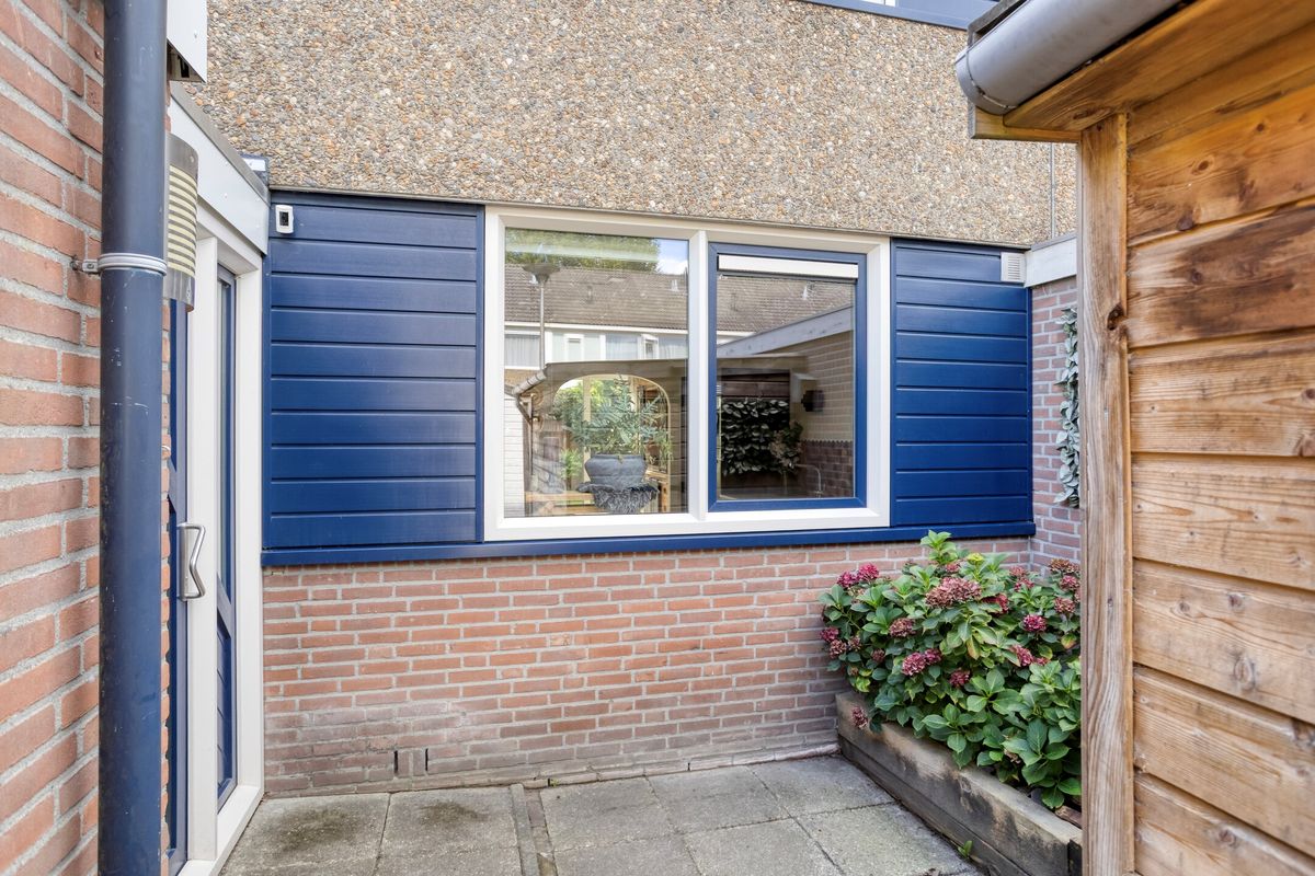 De tuin op het westen is een fijne plek om lekker buiten te zijn, de gezellige overkapping zorgt ervoor dat je altijd droog zit. Je fiets(en) stal je eenvoudig in de aangebouwde schuur – handig na een boodschapje in het centrum!