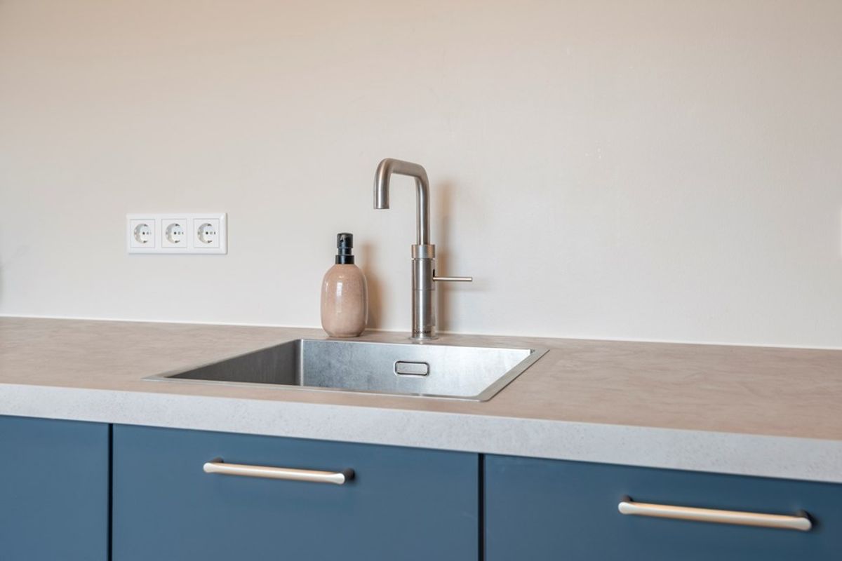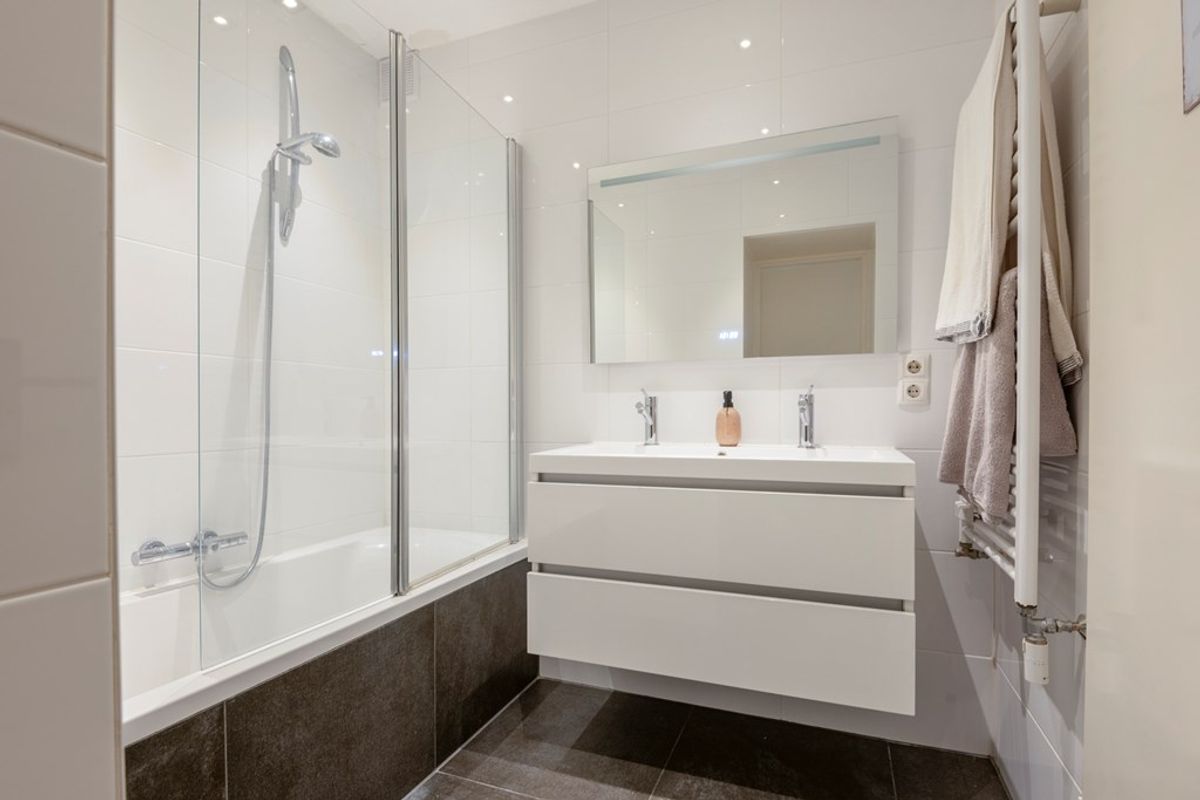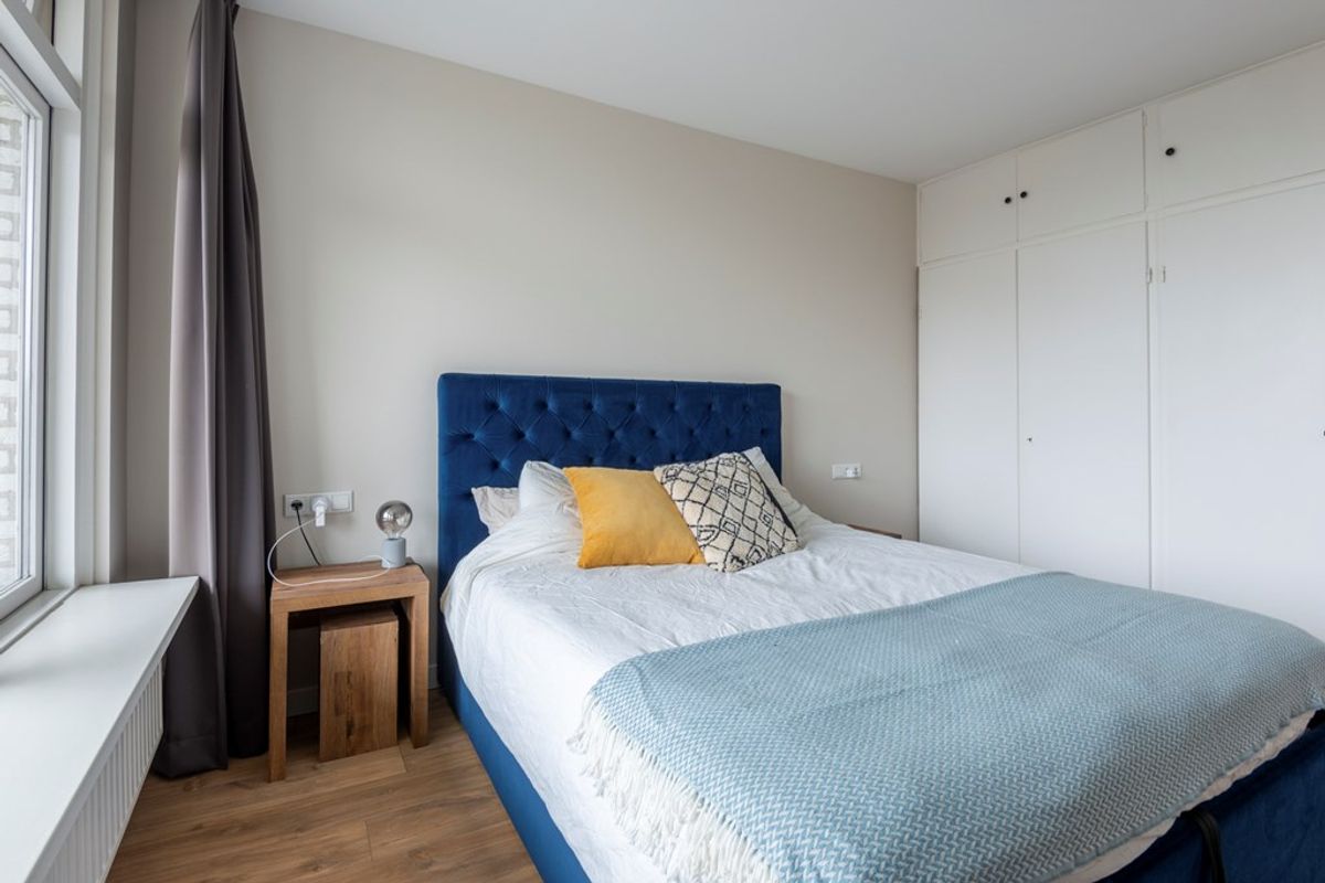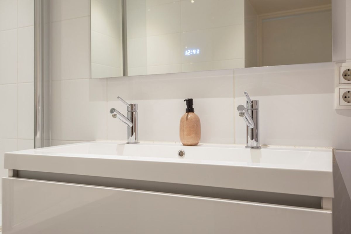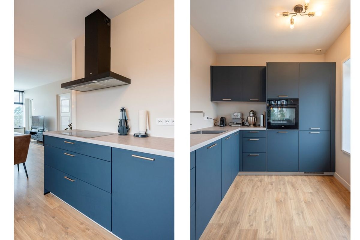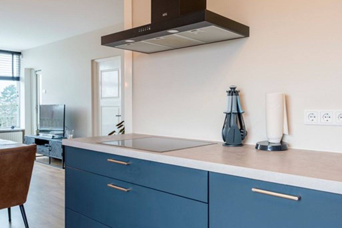 Op de vloer ligt een mooie laminaatvloer met hoge plinten welke drempelloos is doorgelegd naar de slaapkamer. De wanden en het plafond zijn in 2022 voorzien van nieuw, strak en glad stucwerk. De open keuken, in hoekopstelling, beschikt over een inductie kookplaat met afzuigkap, koel-vries combinatie, vaatwasser, oven, Quooker en voldoende kastruimte.. De grote slaapkamer, met uitzicht over het groen, is aan de achterzijde van het appartement gelegen en is ca.13,5 m2 groot en voorzien van twee praktische inbouwkasten. De badkamer, o.a. bereikbaar vanuit de slaapkamer, beschikt over een ligbad met douche, een wastafelmeubel met spiegel, handdoekradiator en is in neutrale kleurstelling betegeld. Het separate moderne toilet is zowel vanuit de hal en de badkamer te bereiken.