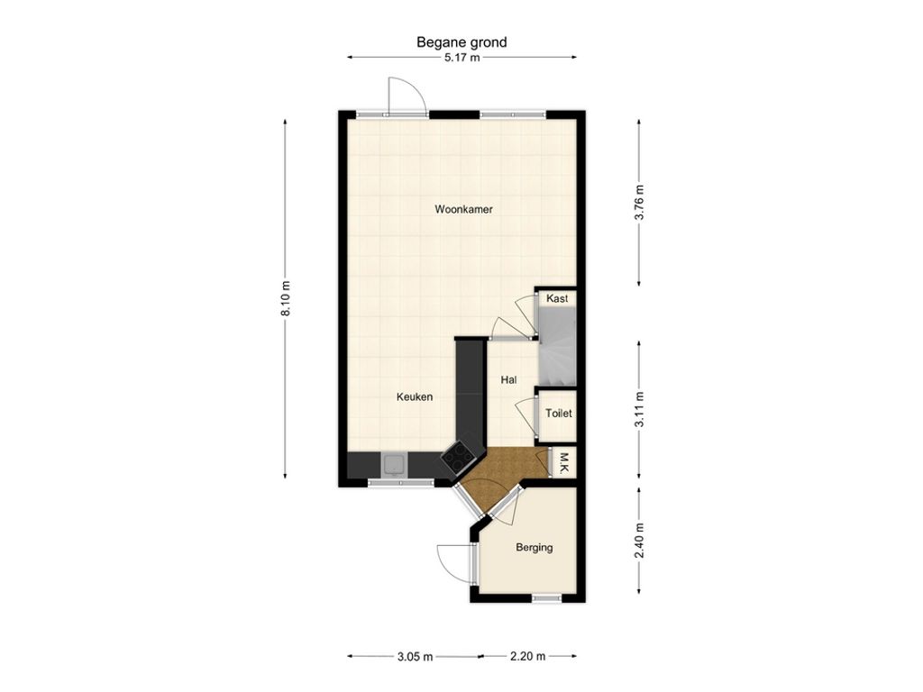 De begane grond beschikt over een lichte, tuingerichte woonkamer met grote ramen en directe toegang tot de achtertuin. De open keuken aan de voorzijde is voorzien van diverse inbouwapparatuur en een vrijstaande koel-vriescombinatie. De inpandige berging aan de voorzijde is geïsoleerd en ook via buiten toegankelijk.