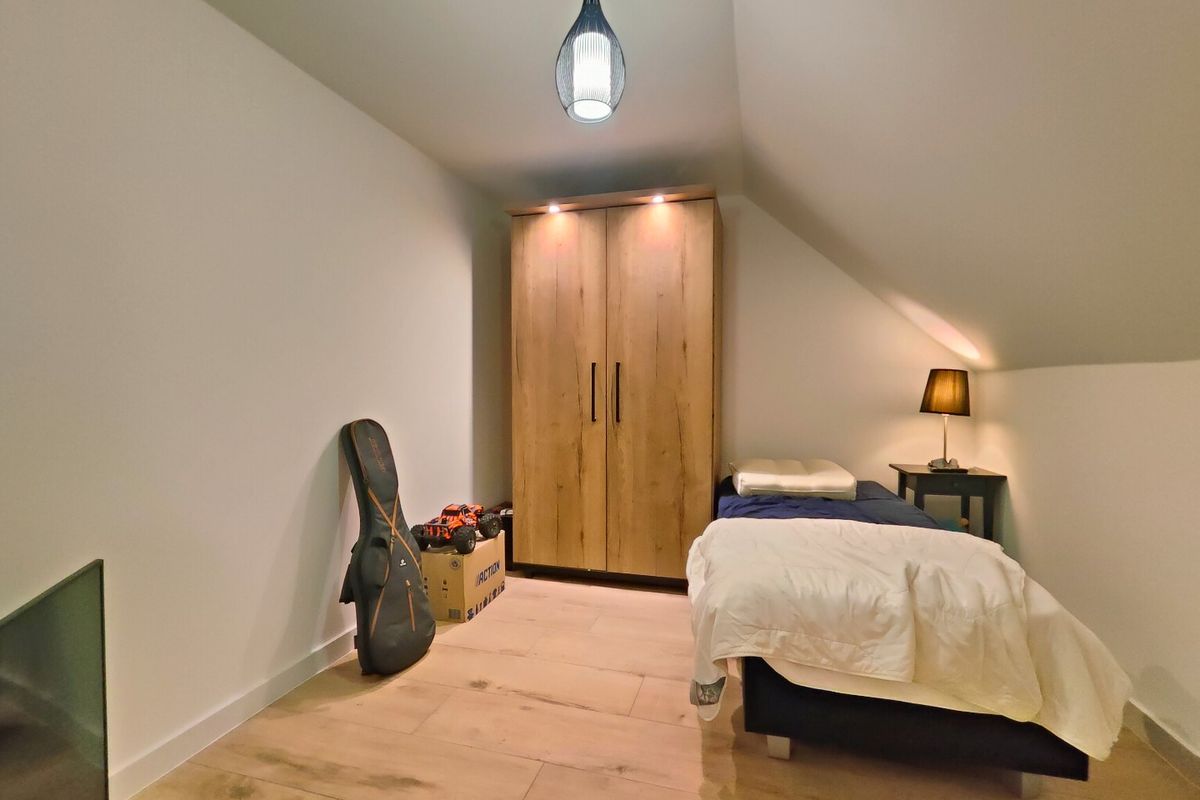 Via een vlizotrap bereik je de ruime vliering, die zich uitstrekt over de volledige lengte van de woning en veel extra bergruimte biedt.