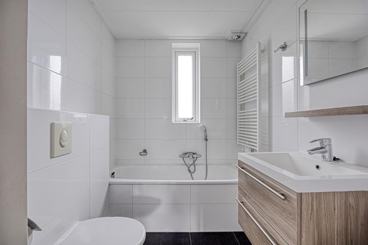 De slaapkamers en tweede badkamer bevinden zich aan de achterzijde van de woning. De badkamer is voorzien van een ligbad/douche, tweede toilet en wastafel.