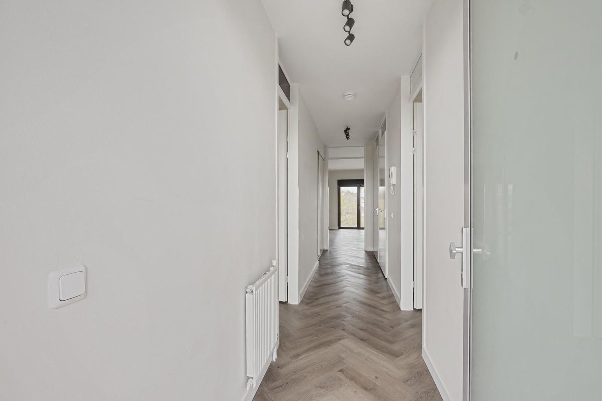 Entree, hal die toegang geeft tot alle ruimtes van het appartement. Hier vind je ook een inbouwkast met daarin de cv-ketel en de aansluiting voor de wasmachine en de droger.