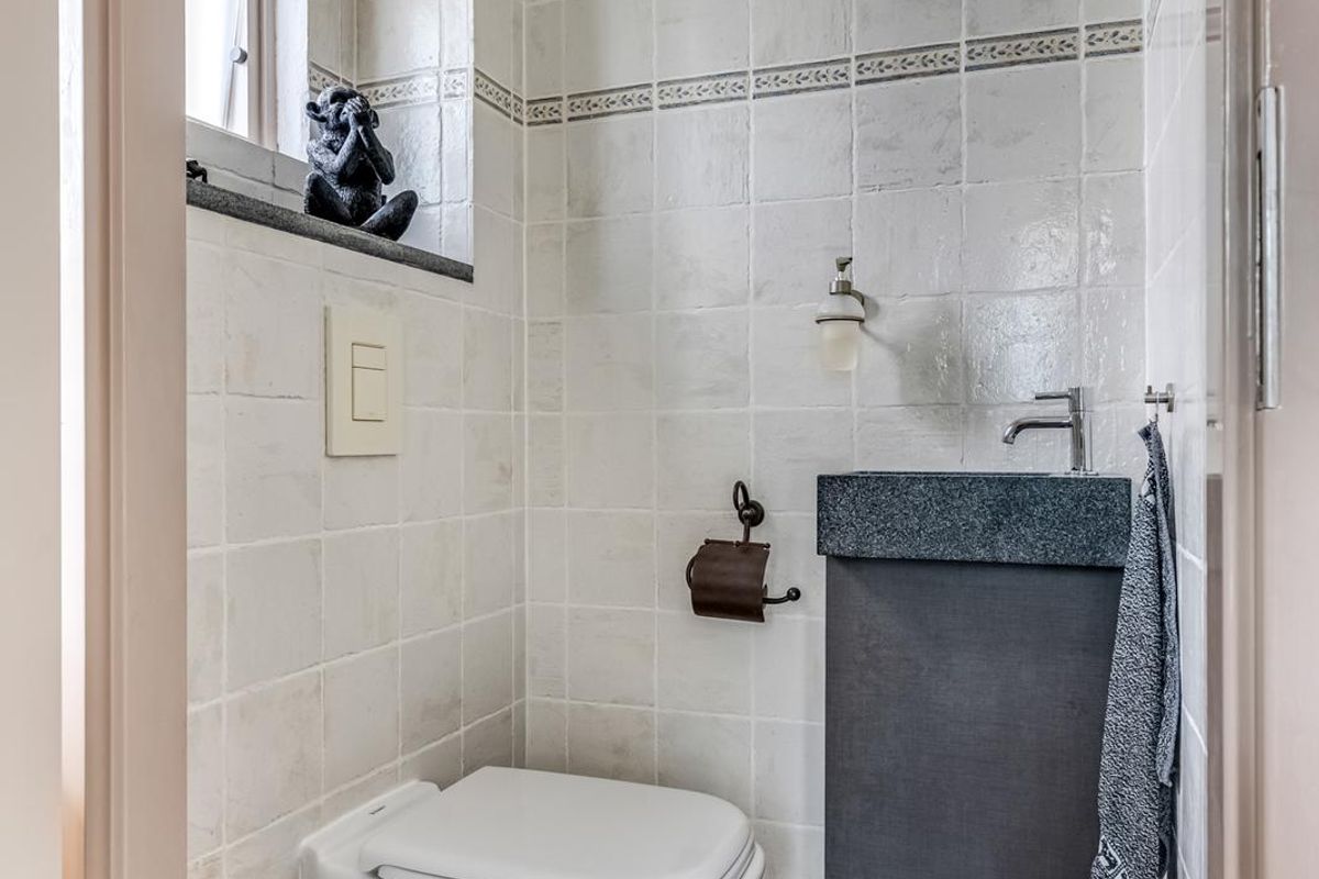 De moderne badkamer is een echte blikvanger: stijlvol betegeld in neutrale tinten, met een luxe inloopdouche met regendouche, dubbele wastafel in houtlook meubel, toilet en extra opbergmeubel. Hier komt ontspanning vanzelf.