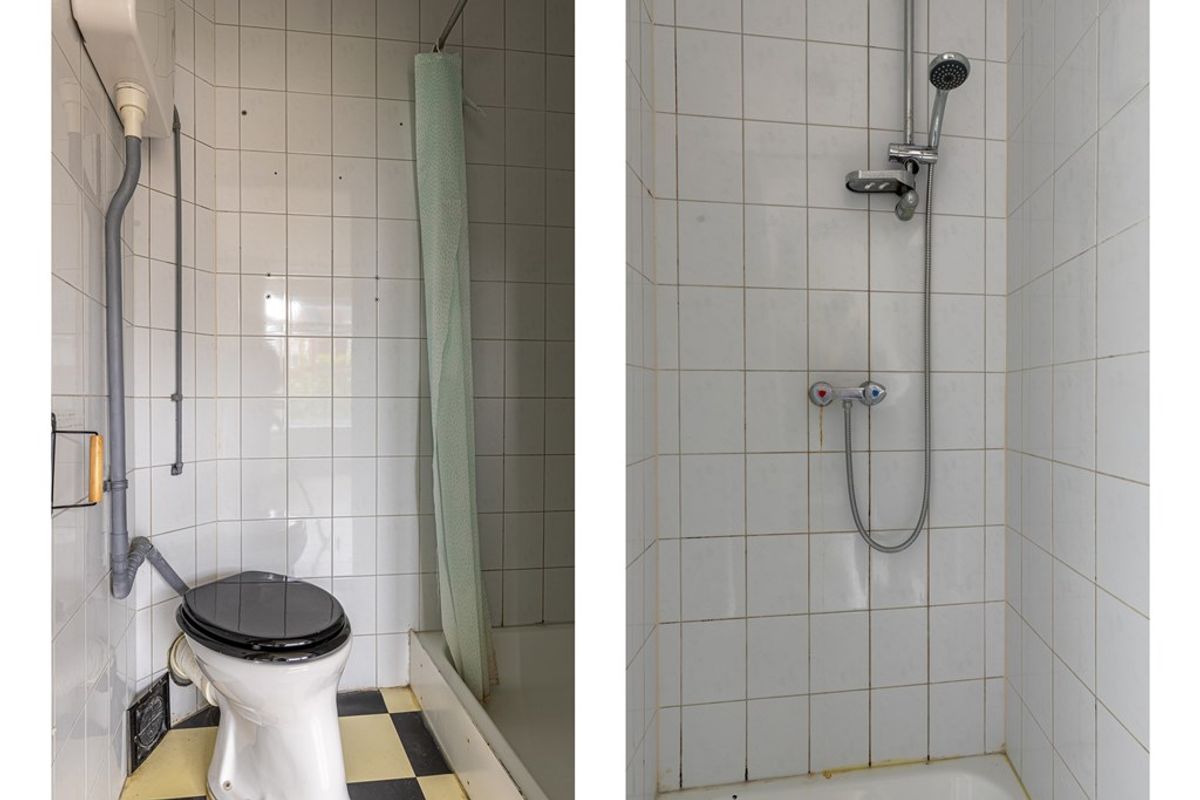 Eenmaal binnen betreed je een multifunctionele kamer, waar voldoende plek is voor een bed, een bank en eventueel een bureau. De woonkamer biedt een mooi uitzicht op de straat, wat zorgt voor een fijne, lichte leefruimte. Aan je linkerzijde vind je de deur naar de badkamer, die is uitgerust met een toilet en een moderne douchecabine.