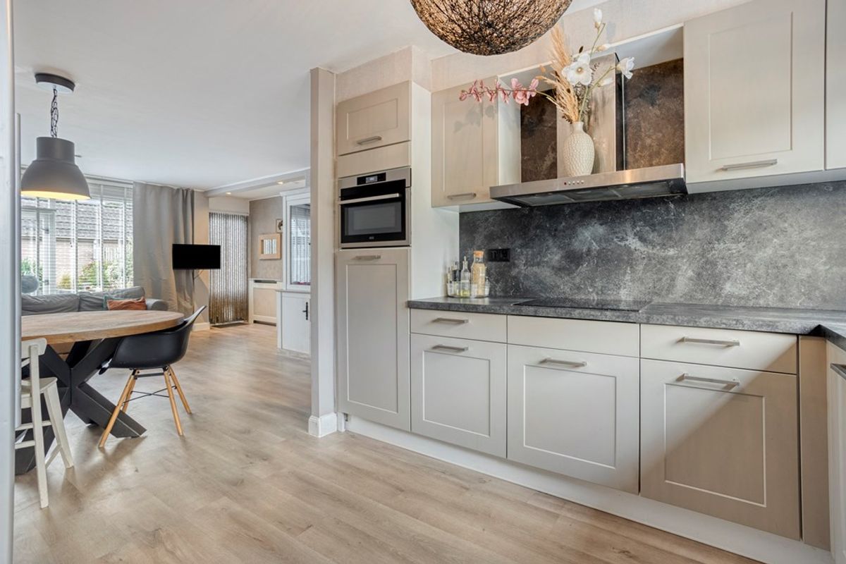 Bij binnenkomst merkt u direct de fijne sfeer en nette afwerking. De hal met toilet leidt naar de verrassend ruime woonkamer, waar grote ramen zorgen voor volop lichtinval. De pvc-vloer en neutrale kleuren vormen een rustige basis, terwijl de indeling uitnodigt tot gezellig samenzijn. Aan de voorzijde ligt de moderne keuken in hoekopstelling en voorzien van inbouwapparatuur zoals een inductiekookplaat, afzuigkap, combimagnetron en vaatwasser. De eethoek vormt de verbindende schakel tussen keuken en zitgedeelte. Via de achterdeur loopt u zo de tuin in, waar binnen en buiten naadloos in elkaar overlopen.