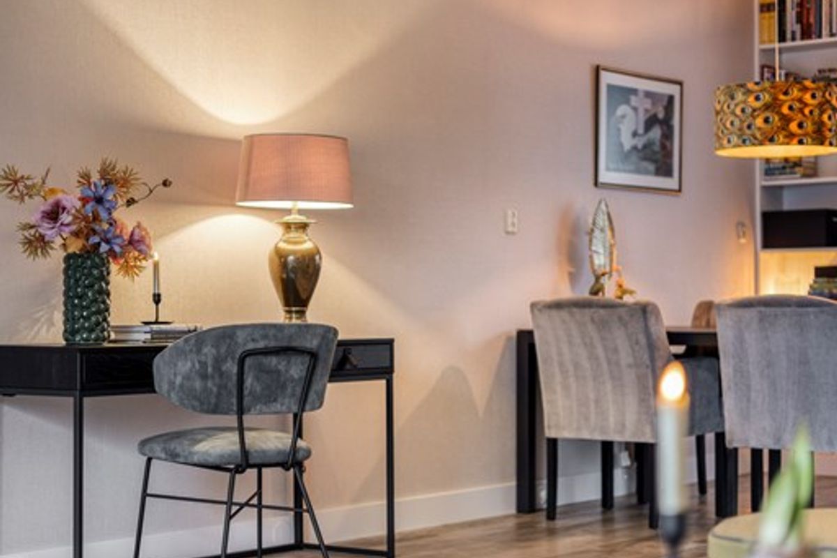 Wanneer u de woonkamer betreedt, valt meteen de royale open indeling op. Grote raampartijen zorgen voor een overvloed aan daglicht en een mooi uitzicht op de achtertuin. De ruimte biedt volop mogelijkheden voor zowel een comfortabele zithoek als een gezellige eethoek. De haard vormt een sfeervolle eyecatcher en maakt de kamer extra warm en uitnodigend. Dankzij de aanwezige airconditioning blijft het hier bovendien in elk seizoen aangenaam. Een heerlijke plek om te ontspannen, te werken of gasten te ontvangen.