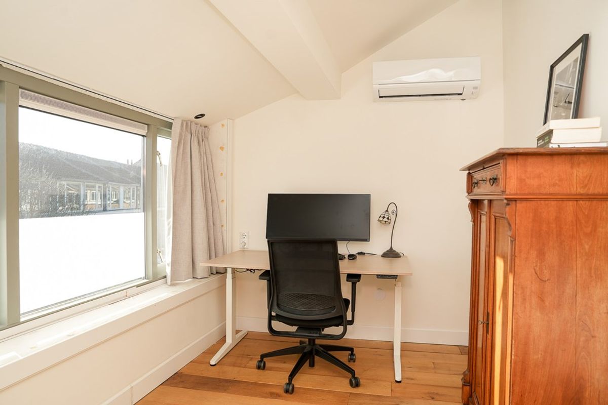 Op de eerste verdieping bevindt zich een lichte overloop die toegang biedt tot drie slaapkamers en de recent vernieuwde badkamer. In de badkamer is een tweede toilet aanwezig. De gehele verdieping is voorzien van airconditioning.