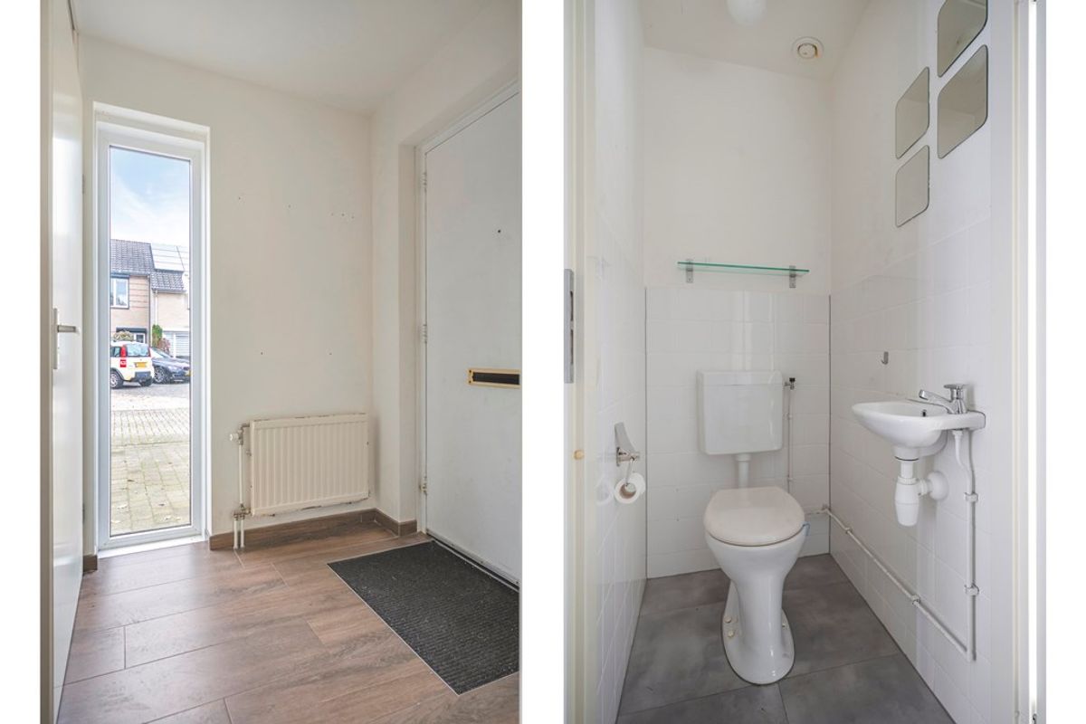 Entree/hal met meterkast (met slimme meters) en toilet met fonteintje.