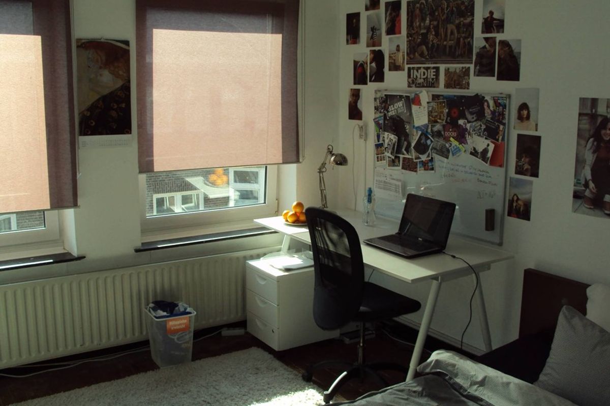 The kitchen is shared with 5 fellow students, the kitchen is equipped with a 4-burner hob, extractor hood, combi- microwave, sink with fountain and a table with 4 chairs. The shared washing machine is also located in the kitchen.
