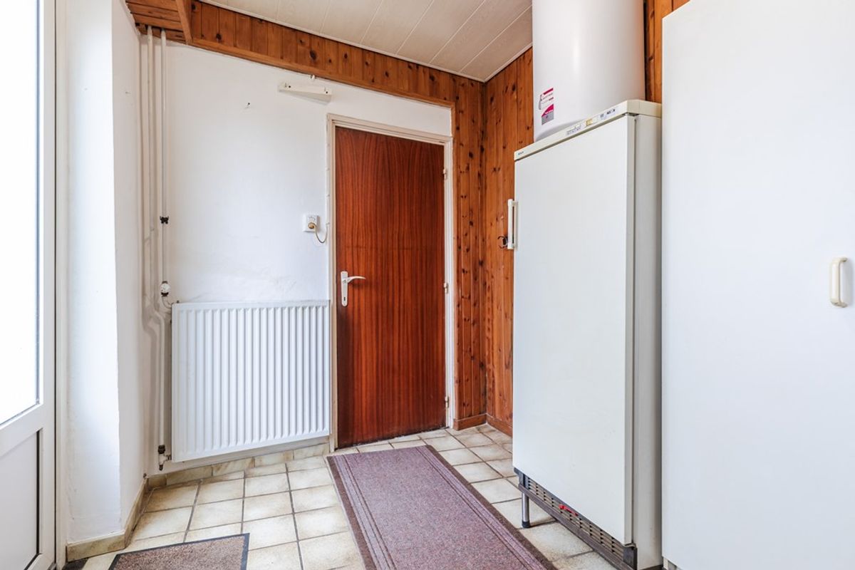 De ruime garage (36 m²) is voorzien van een elektrische poort. Achter de garage zijn nog enkele bergingen van resp. 7 en 4 m² gelegen.