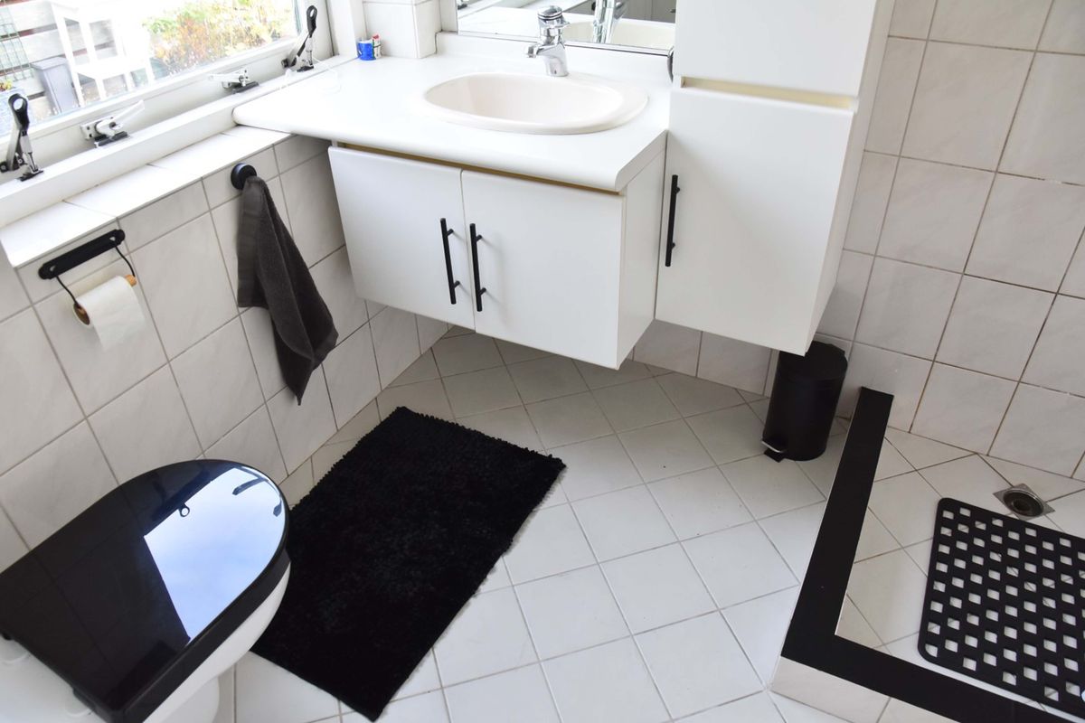 Deze woning beschikt over een badkamer beneden. Deze is voorzien van toilet, wastafel met spiegel en douche. Op de eerste verdieping vindt u twee slaapkamers. De grote slaapkamer aan de achterkant is voorzien van een dakkapel, vaste kast, douche en wastafel met spiegel. De slaapkamer aan de voorkant is eveneens voorzien van een dakkapel. Ook is er op deze verdieping een extra toiletruimte met kantelraam aanwezig en wasmachine/droger aansluiting.