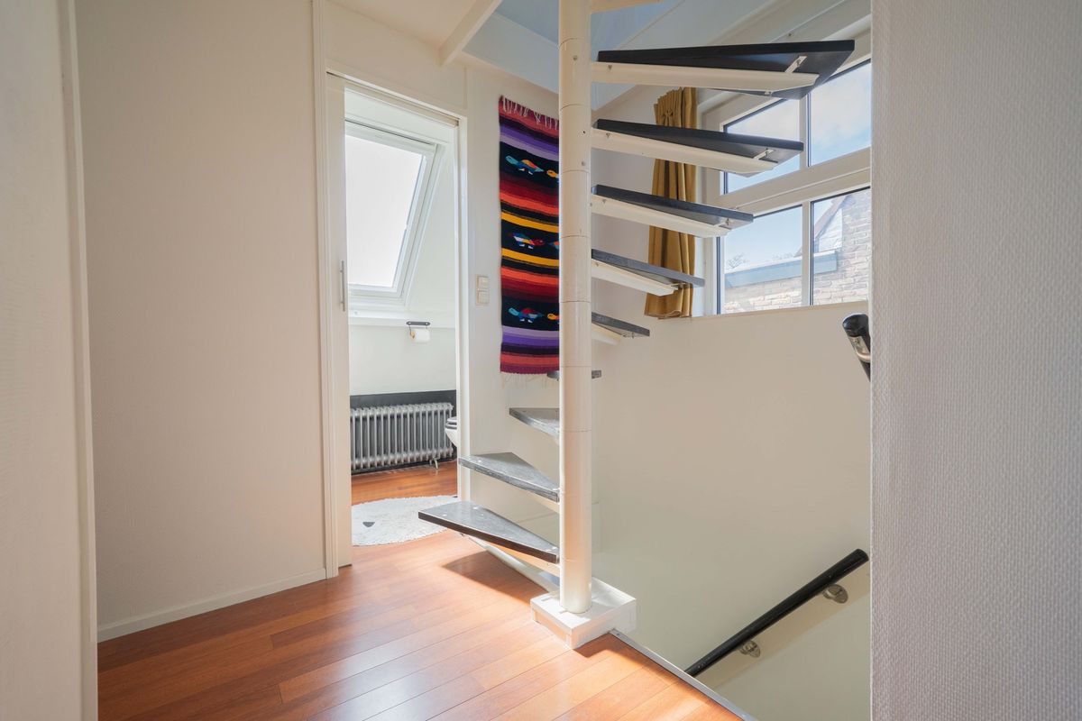 Via een vaste wenteltrap bereikt u de zolder die verrassend veel ruimte biedt. Deze ruimte is voorzien van twee grote dakramen en momenteel in gebruik als hobbyruimte, maar biedt ook volop andere mogelijkheden. Denk hierbij aan een werkplek of als derde slaapkamer.