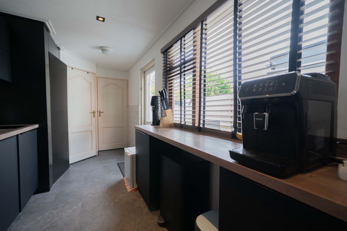 De keuken ligt in een aparte ruimte, waardoor koken en wonen elkaar niet in de weg zitten. Deze keuken is modern uitgevoerd en biedt alles wat je nodig hebt om dagelijks comfortabel te kunnen koken. Direct grenzend aan de keuken tref je de badkamer op de begane grond. Deze is functioneel ingedeeld met een douche en een wastafel, en is daarmee een praktische voorziening die je niet naar boven dwingt. Het toilet is apart gesitueerd, wat het wooncomfort vergroot.
