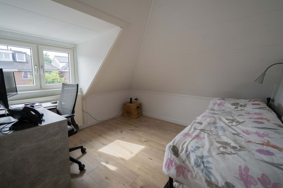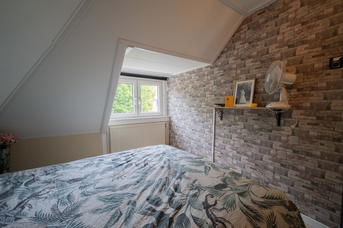 Op de eerste verdieping verbindt een overloop drie slaapkamers. De kamers aan de voor- en achterzijde zijn royaal en profiteren van dakkapellen, die niet alleen extra licht binnenlaten maar ook de ruimte verrassend ruimtelijk en bruikbaar maken. Of je nu behoefte hebt aan een rustige ouderslaapkamer, een inspirerende werkplek of een knusse kinderkamer: de indeling leent zich moeiteloos voor verschillende woonwensen. De derde kamer is ideaal als logeer- of hobbykamer, of juist als kleedruimte wanneer je extra bergruimte zoekt.