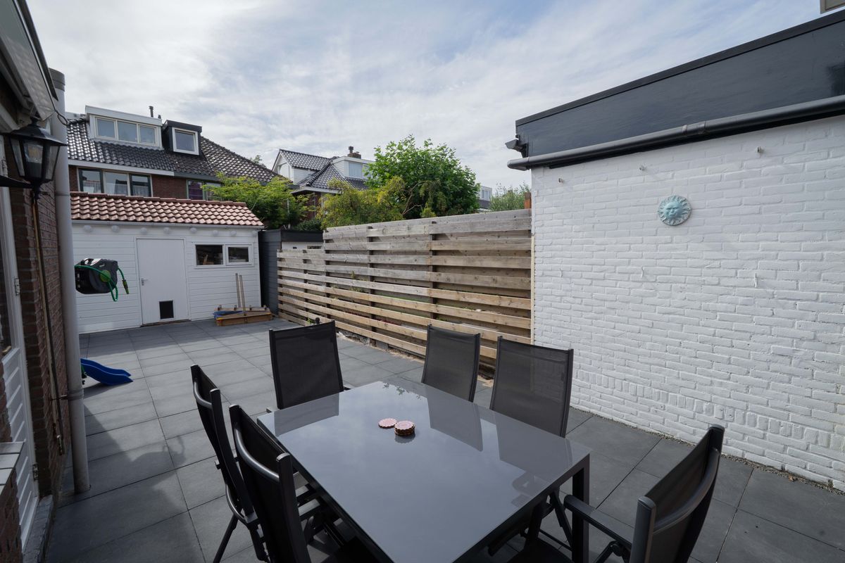 Buiten gaat het woonplezier onverminderd door. De achtertuin ligt op het zonnige zuidoosten, zodat je al vroeg op de dag kunt genieten van de eerste zonnestralen en tot in de middag een aangename lichtinval hebt. De tuin is onderhoudsvriendelijk aangelegd en daardoor eenvoudig netjes te houden; zo besteed je minder tijd aan verzorgen en houd je meer tijd over om te ontspannen. Helemaal achterin staat een grote houten schuur: een uitkomst voor het stallen van fietsen en tuingereedschap, maar net zo goed in te richten als werkbank, klusruimte of hobbyatelier.