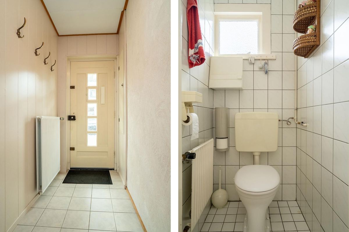 Via de voordeur kom je in de hal met trapopgang naar de eerste verdieping en toegang tot de woonkamer.