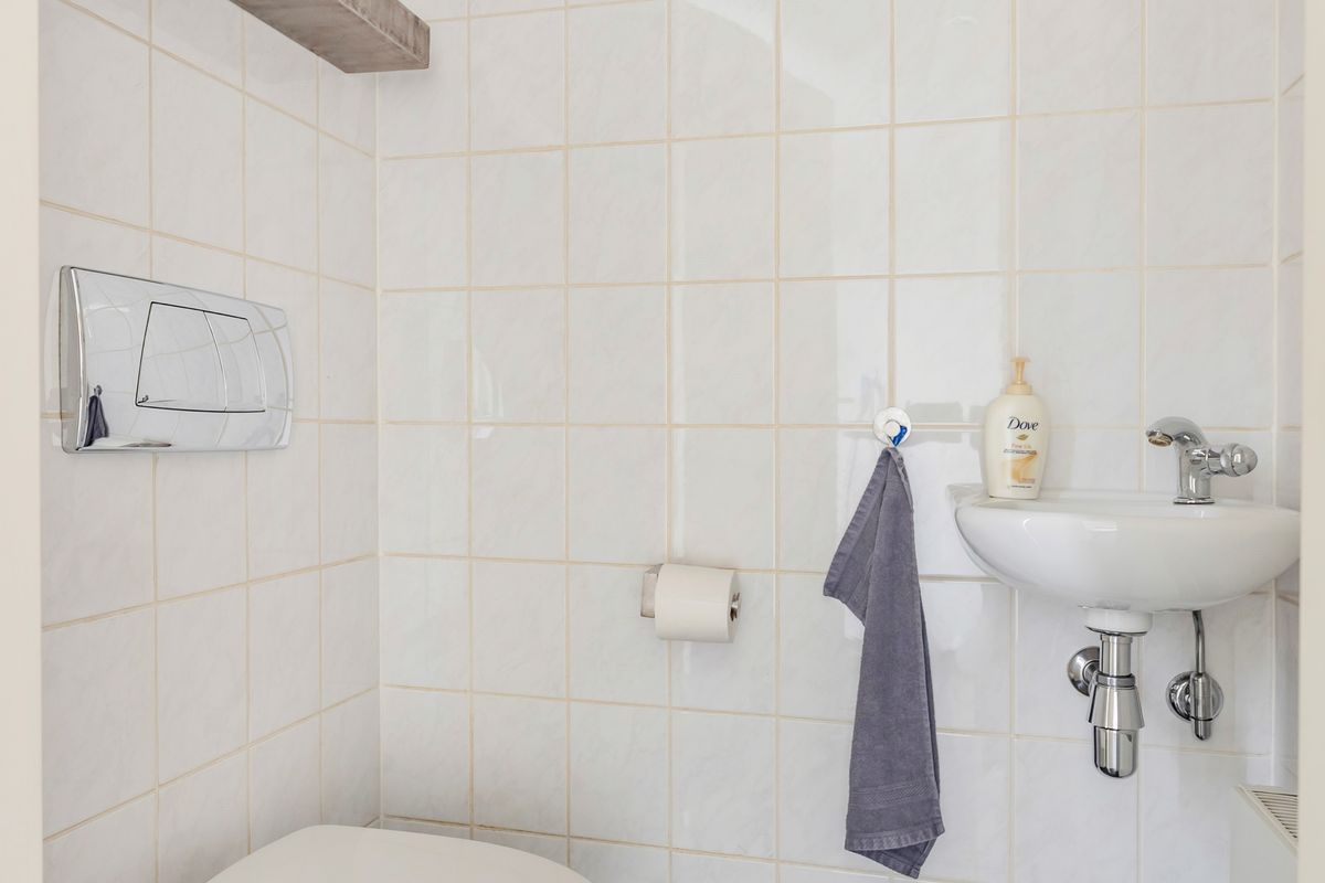 Entree/hal met meterkast, garderobe en een toilet voorzien van een hangcloset met fonteintje.