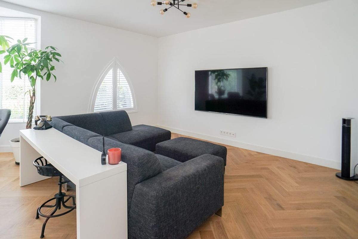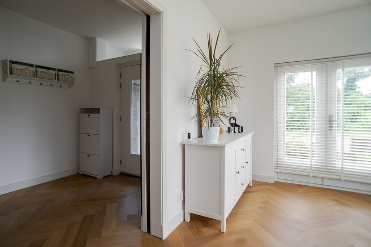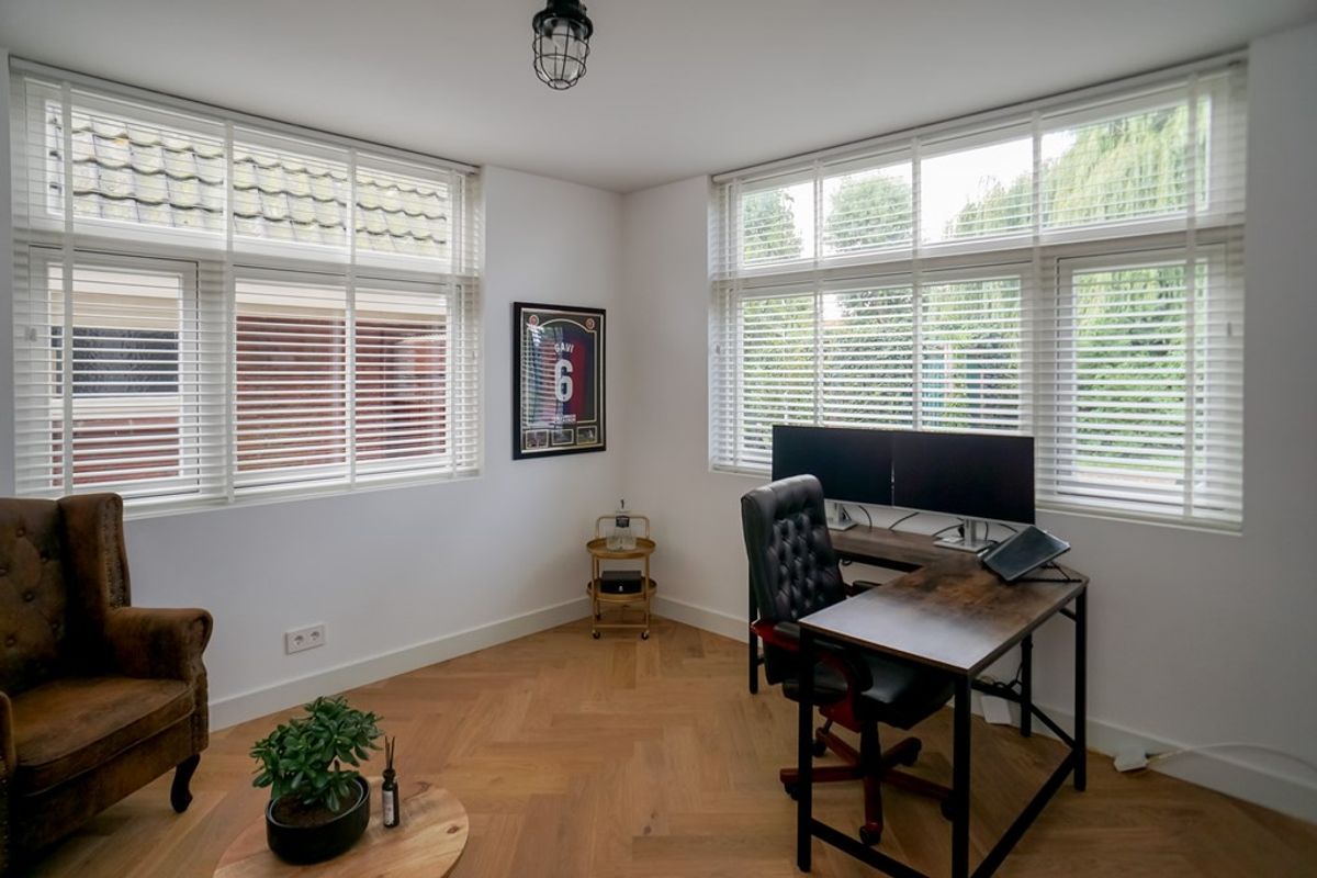 Ook is de indeling ruimtelijk en logisch: een woonkamer vol natuurlijk licht, een eetkamer die naadloos aansluit op de moderne open keuken en een extra kamer die flexibel in te richten is als thuiskantoor of slaapkamer. Vanuit de hal heeft u tevens toegang tot zowel de kelder als de trap naar de eerste verdieping.