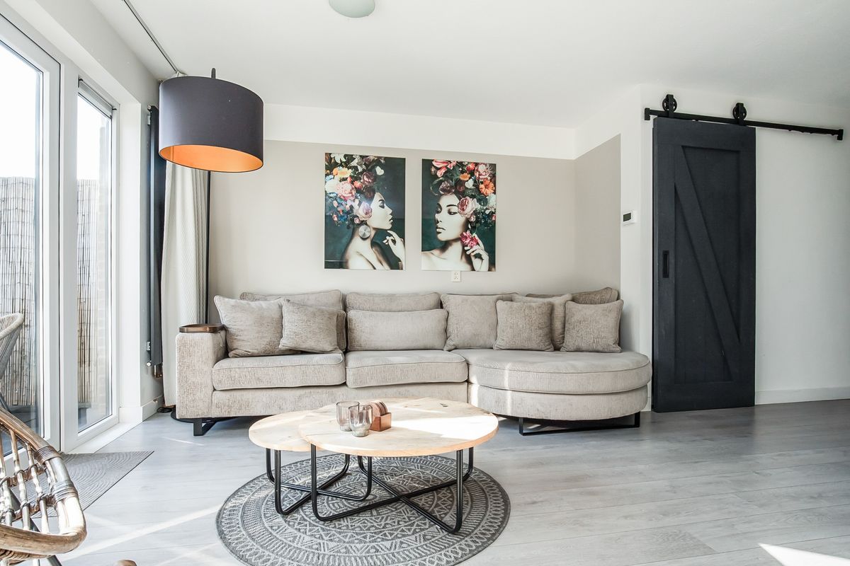 afwerking. Vanuit de hal bereikt u de sfeervolle en lichte woonkamer met een moderne