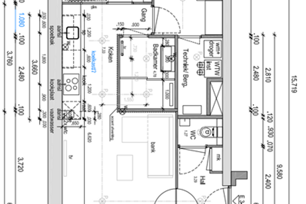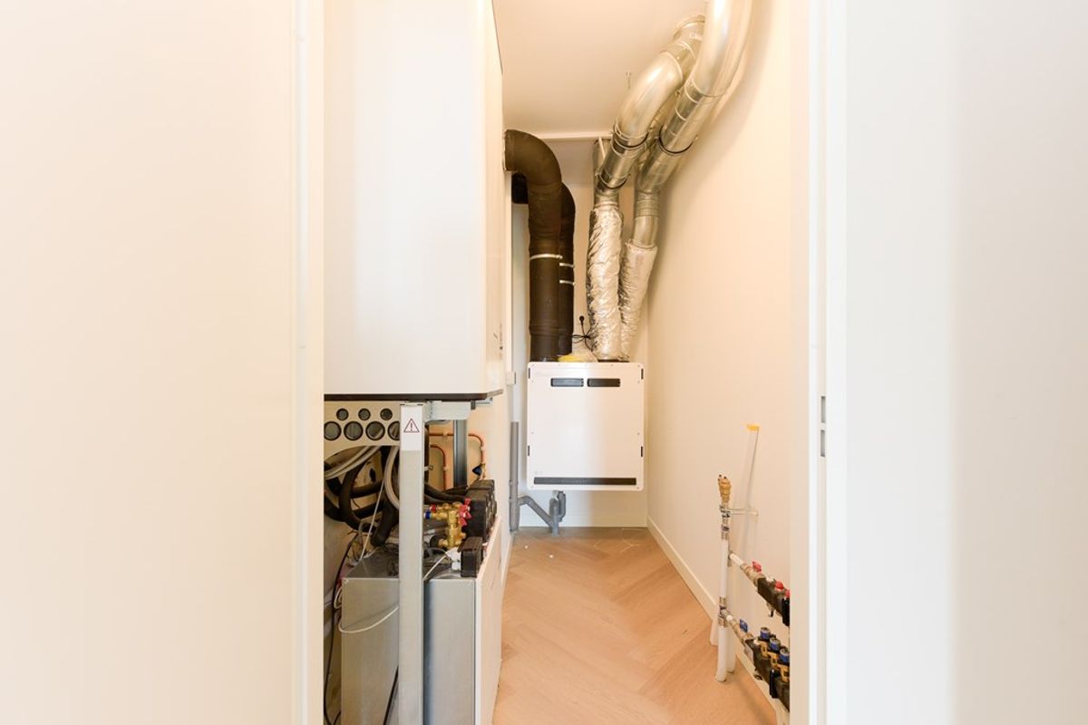 Naast de badkamer is de bergruimte met wasmachine-/drogeraansluiting.