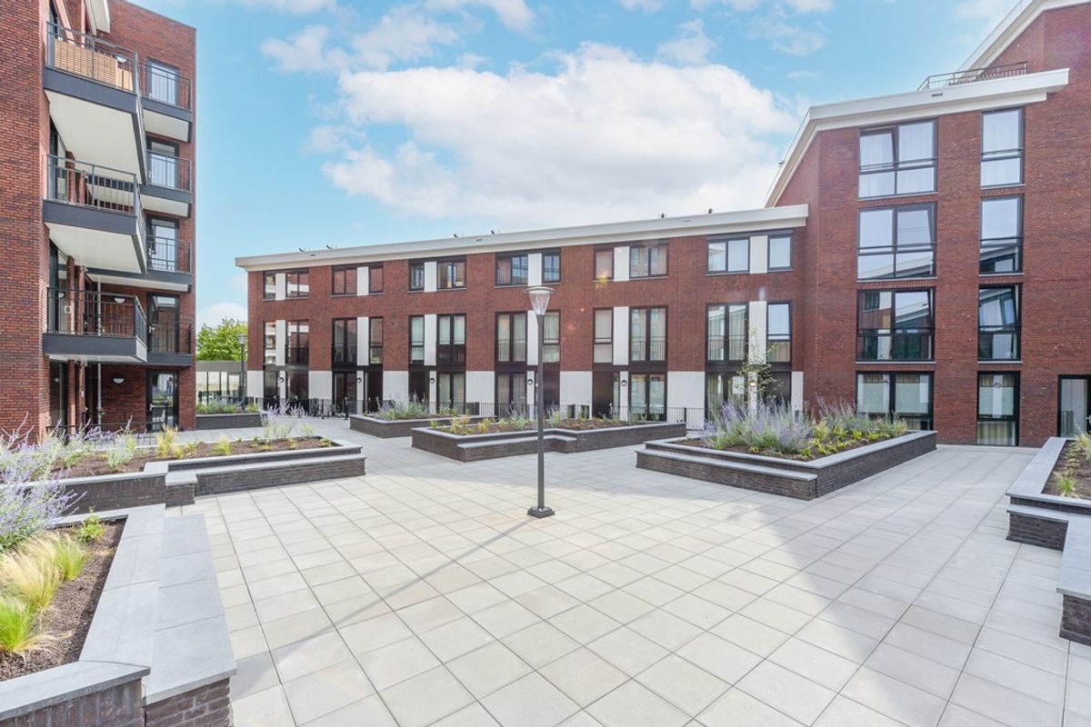 Vanuit de prachtige binnentuin is er toegang tot de toren waarbinnen de betreffende woning is gesitueerd.