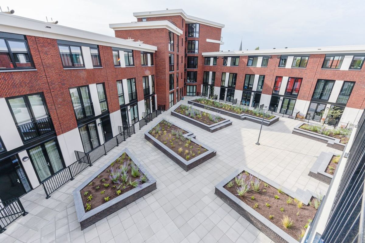 • Balkon met zicht op de fraai aangelegde binnentuin