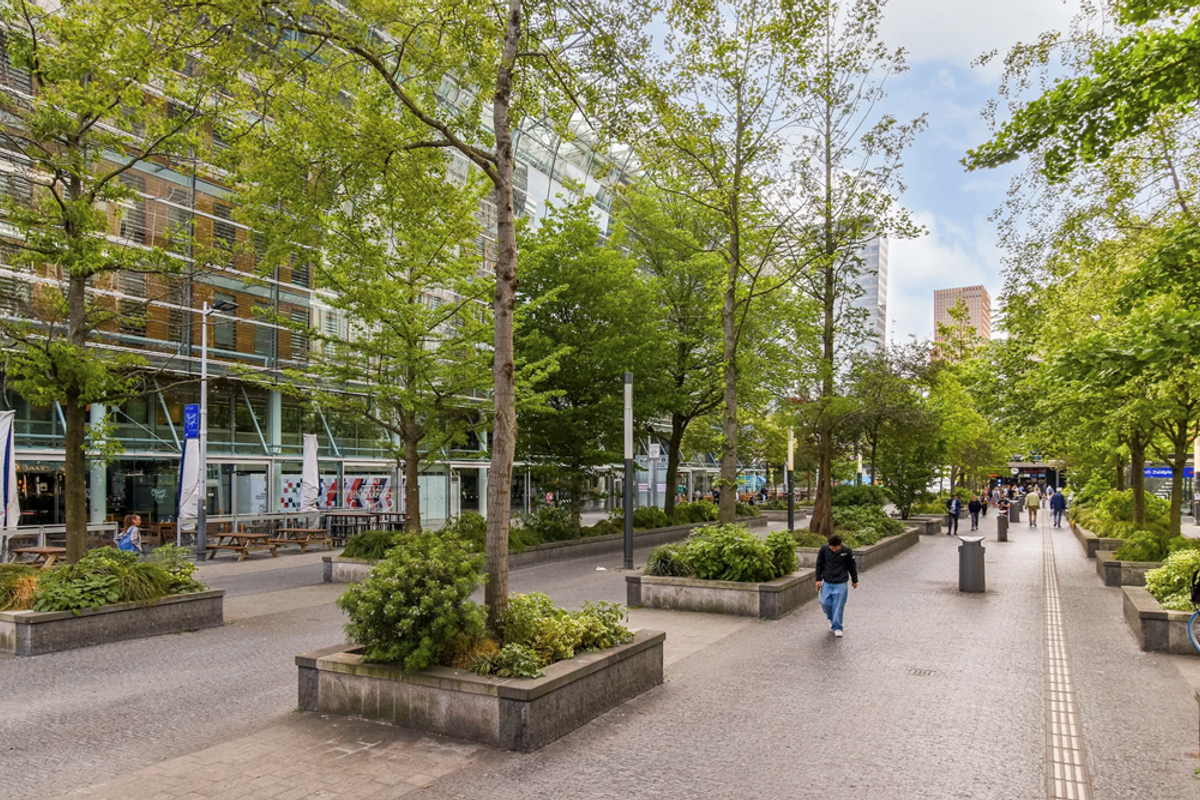 The apartment is situated in a prime location on the border of the Zuidas business district and the quiet, green neighbourhood of Buitenveldert. For daily necessities, the Gelderlandplein shopping centre is just a few minutes’ walk away, offering several supermarkets, specialty shops, and various dining options. Other pleasant eateries, including the Michelin-starred restaurant Bolenius, The Breakfast Club, Koetjes en Kalfjes, Dicky’s, and Restaurant Loetje, are all within walking distance. A short bike ride takes you to the Beethovenstraat, which offers even more shopping and dining opportunities. The Beatrixpark, Amstelpark, Gijsbrecht van Aemstelpark, and the Amsterdamse Bos are perfect for walking and relaxing. The Amsterdamse Bos also offers many enjoyable facilities, such as the goat farm, Spa Zuiver, and various sports clubs.
