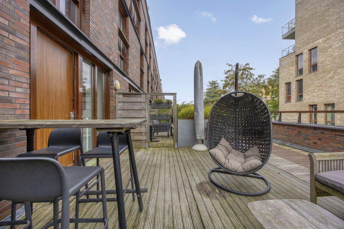 Op de eerste etage en begane grond van een modern complex aan de Cruquiuskade ligt deze ruime maisonnette van circa 120 m². De woning heeft een lichte en royale woonkamer met open keuken, ideaal voor wie houdt van een praktische indeling en voldoende leefruimte. De keuken is voorzien van moderne inbouwapparatuur en sluit naadloos aan op het woongedeelte. Daarnaast zijn er meerdere (slaap)kamers die flexibel te gebruiken zijn, een stijlvolle badkamer en een separate berging. Met een energielabel A+ is de woning zeer energiezuinig en klaar voor de toekomst.