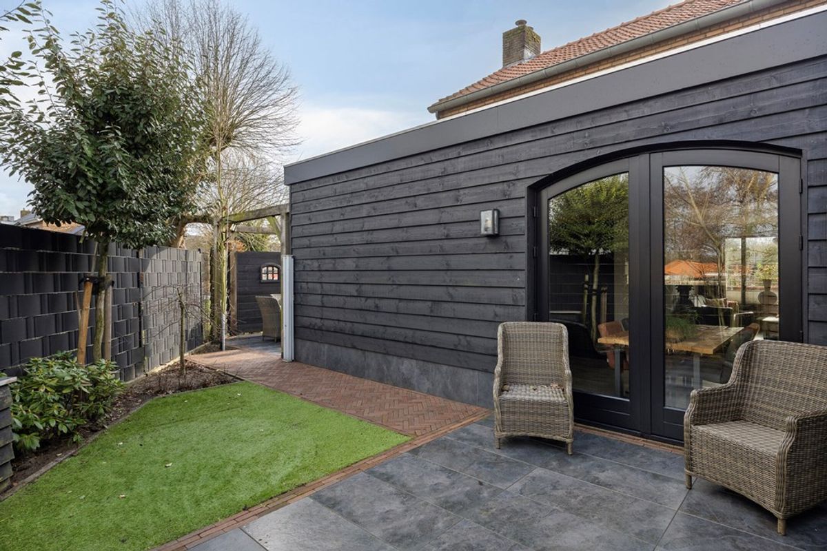 De tuin rondom is onderhoudsvriendelijk aangelegd met bestrating, (kunst)gras en vaste beplanting. Meerdere zitplekken maken het mogelijk om op elk moment van de dag een fijne plek in de zon of schaduw te kiezen. De zwarte houten gevelbekleding van de aanbouw geeft de tuin een eigentijdse uitstraling en zorgt voor een stijlvolle overgang tussen woning en buitenruimte. Aangrenzend bevindt zich de dubbele garage met veel bergruimte en mogelijkheden voor hobby of werk aan huis. Aan de voorzijde beschikt u over een royale, afsluitbare oprit, waar u met gemak meerdere auto’s parkeert.