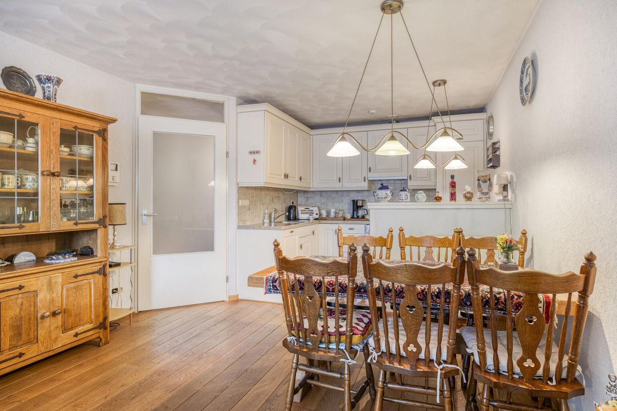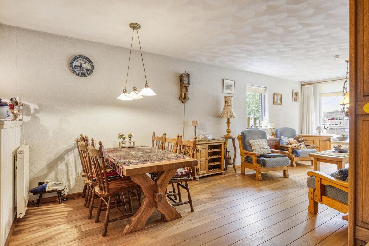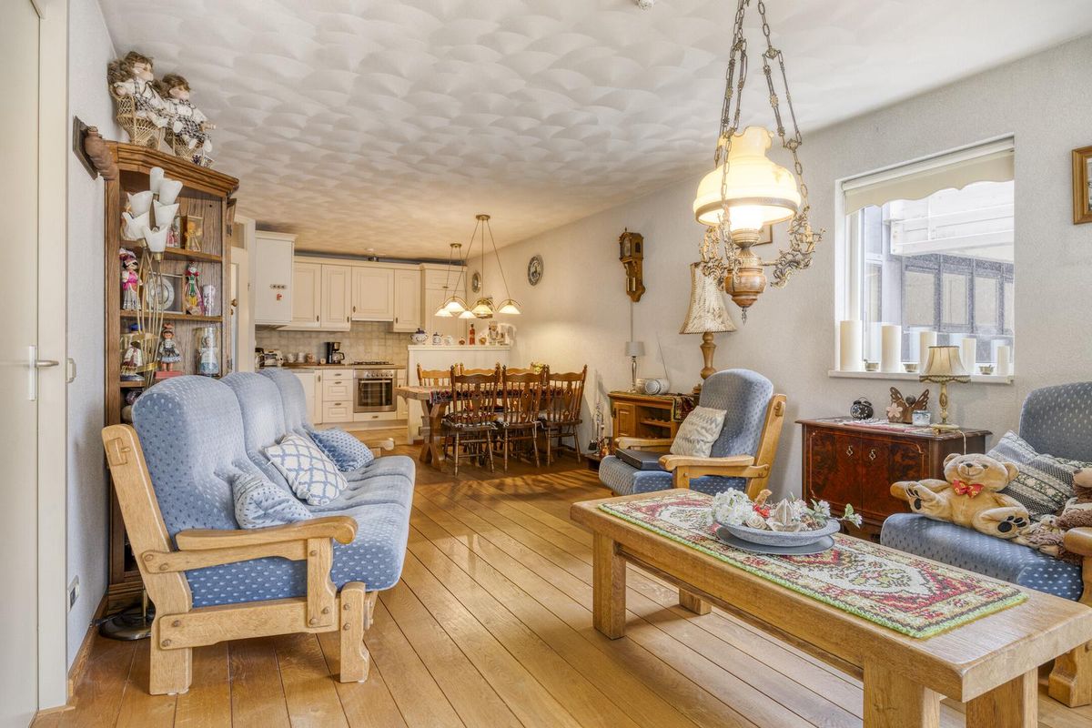 De ruime woonkamer met open keuken is afgewerkt met in de woonkamer een eikenhouten vloer en in de keuken een tegelvloer, spachtelputz als wandafwerking en schuurwerk als plafondafwerking. De open keuken is voorzien van een L-vormig lichte keukeninrichting met een granieten aanrechtblad en inbouwapparatuur, te weten: een vaatwasser (Whirlpool), een koelkast met vriezer eronder, een 4-pitsgasfornuis, een oven, een gootsteen en een vlakscherm afzuigkap. In de keuken bevindt zich de intercom. De ruime woonkamer met open keuken heeft veel lichtinval door de grote raampartijen, en biedt toegang tot de loggia met schuiframen en elektrisch zonnescherm, welke een fraai en weids uitzicht bieden.