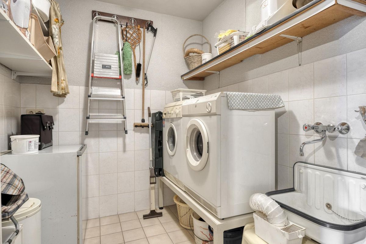 De bijkeuken/wasruimte is afgewerkt met een tegelvloer, tegelwerk tot 1.40 m¹ met daarboven spachtelputz als wandafwerking en schuurwerk als plafondafwerking. In de wasruimte bevindt zich de wasmachine- en droger opstelling en is voorzien van een gootsteen met warm & koud water.