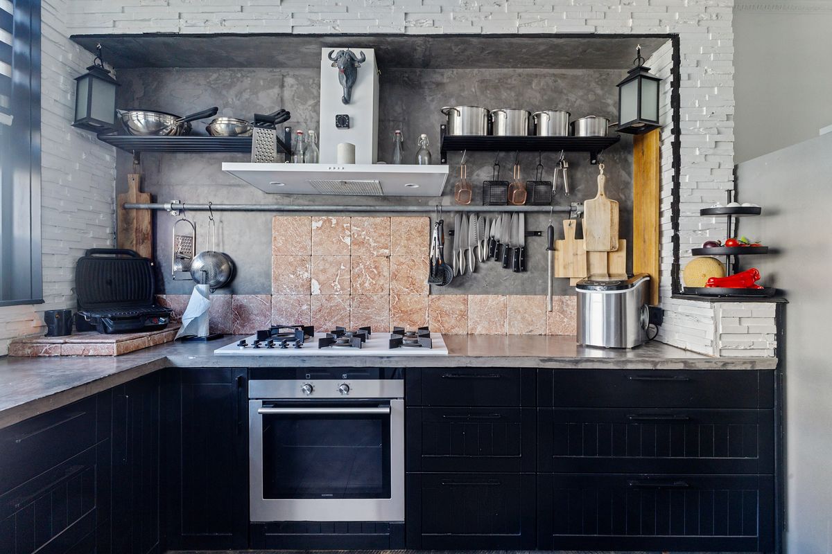 - Keuken met inbouwapparatuur en Amerikaanse koelkast