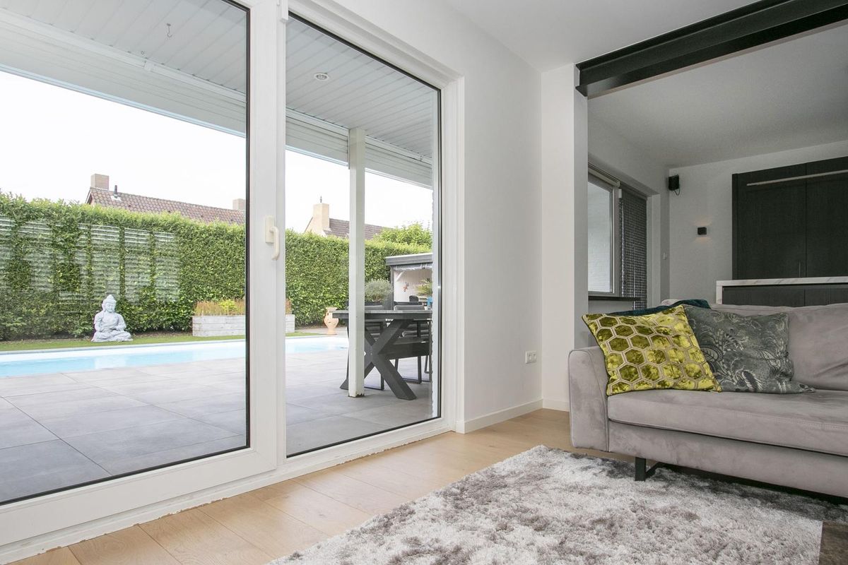Deze ruimte is in zijn geheel uitgerust met mooie lichte eiken vloer, strakke stukwanden en dito strak stukplafond. Royale puien aan tuinzijde geven een magnifiek uitzicht over de tuin die een perfecte privacy biedt waar genoten kan worden van een heerlijk riant verwarmd zwembad van fatsoenlijk royale afmetingen!