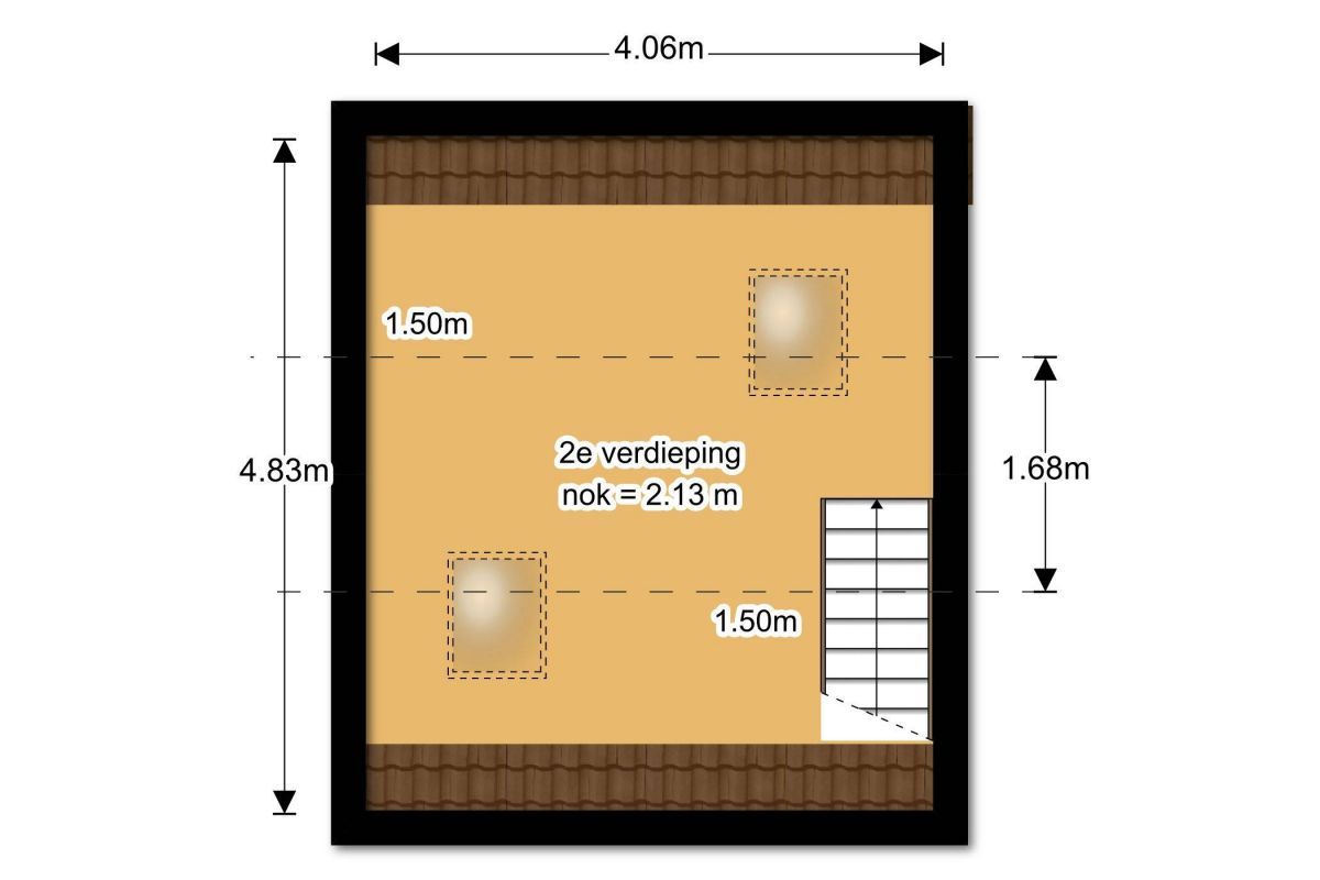 Overloop, ruime badkamer met ligbad, wastafel, tweede toilet. Ruime slaapkamer met dakraam en dakkapel.
