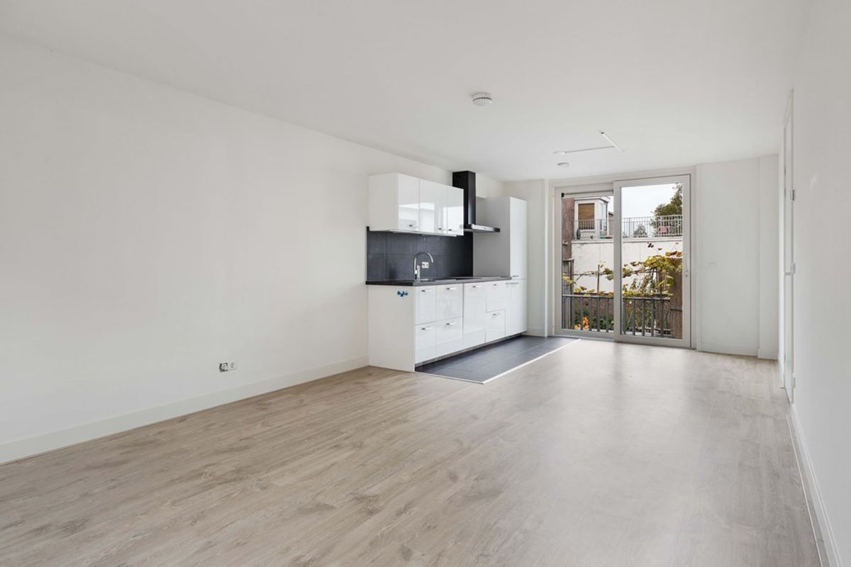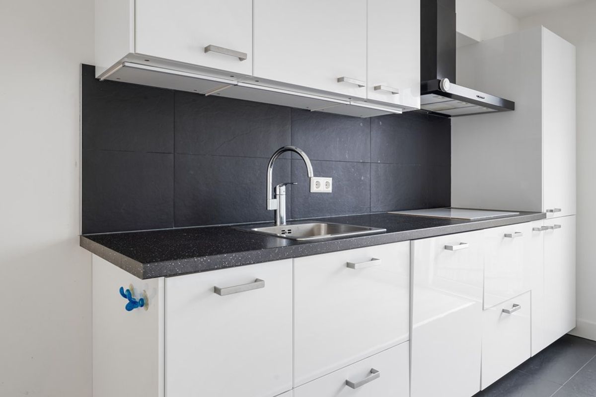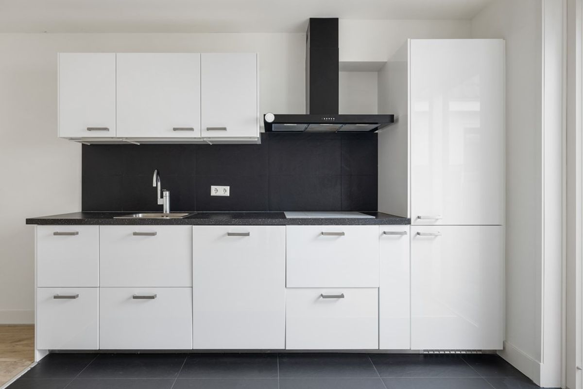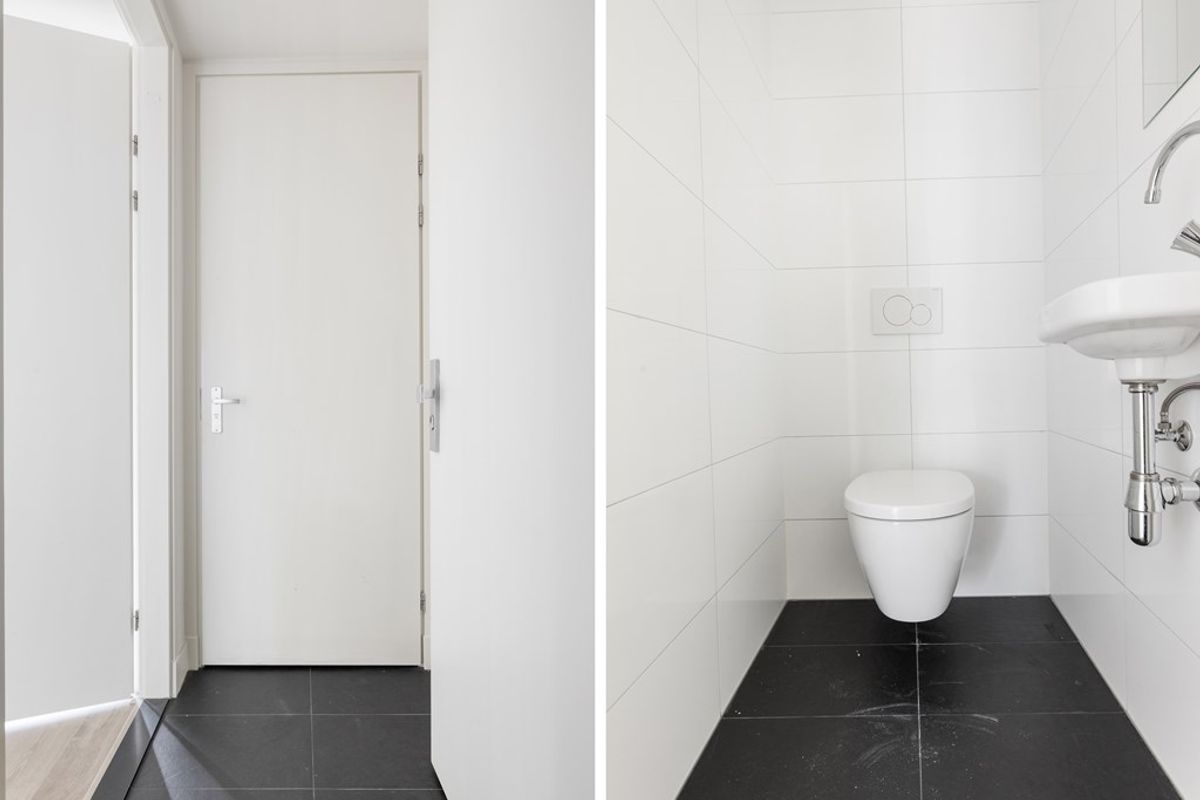 De entree bevindt zich op de eerste verdieping. Hier kom je binnen in de doorzonwoonkamer met open keuken, waarbij ramen aan zowel de voor als achterzijde zorgen voor veel daglicht en een ruimtelijk gevoel. De keuken bevindt zich aan de achterzijde en biedt directe toegang tot het dakterras. Deze buitenruimte van circa 10 m² is een echte plus en vormt een fijne verlenging van de leefruimte, ideaal voor een rustig moment in de zon of een etentje buiten. Op deze verdieping bevindt zich tevens een separaat toilet.