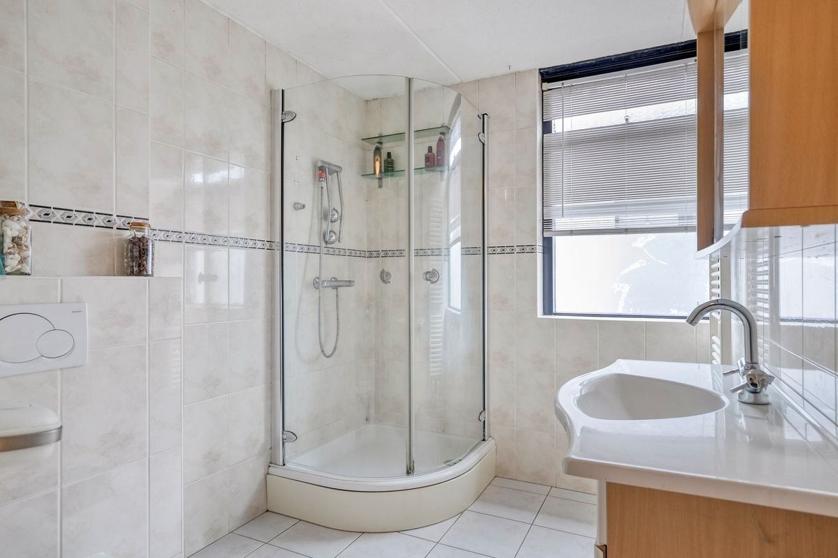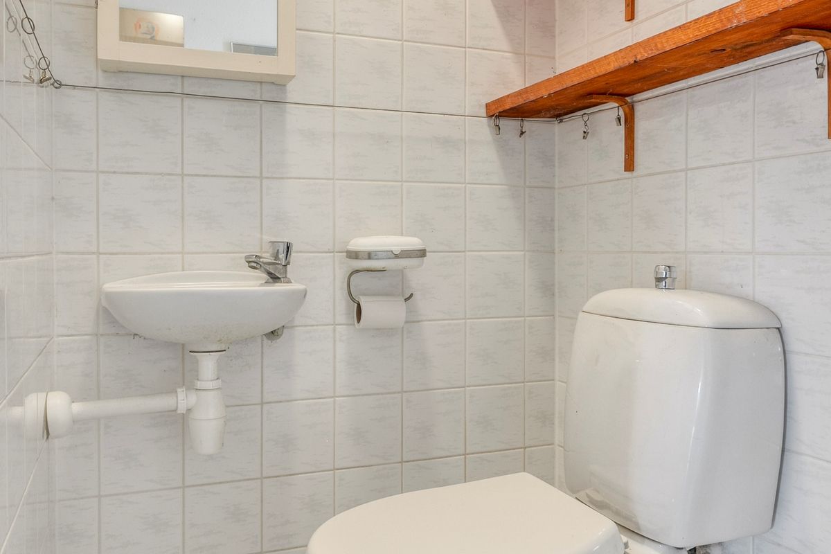 Op de eerste verdieping bevinden zich twee slaapkamers, waarvan één bijzonder ruim is. Deze kamer leent zich uitstekend voor het creëren van twee afzonderlijke slaapkamers. De badkamer is voorzien van vloerverwarming en beschikt over een douche, wastafel en tweede toilet — functioneel en netjes, maar qua afwerking wat gedateerd.