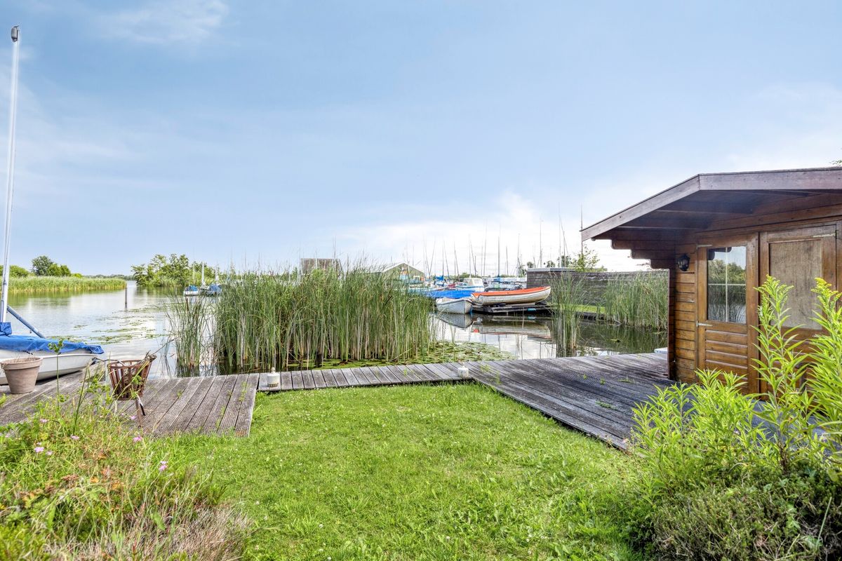 De achtertuin – met volledige zonligging – grenst direct aan het water, waardoor je kunt genieten van de mogelijkheid om je eigen sloep, kano of SUP-board aan te leggen. Of je nu houdt van varen, vissen of gewoon ontspannen aan de waterkant: deze tuin biedt het allemaal.