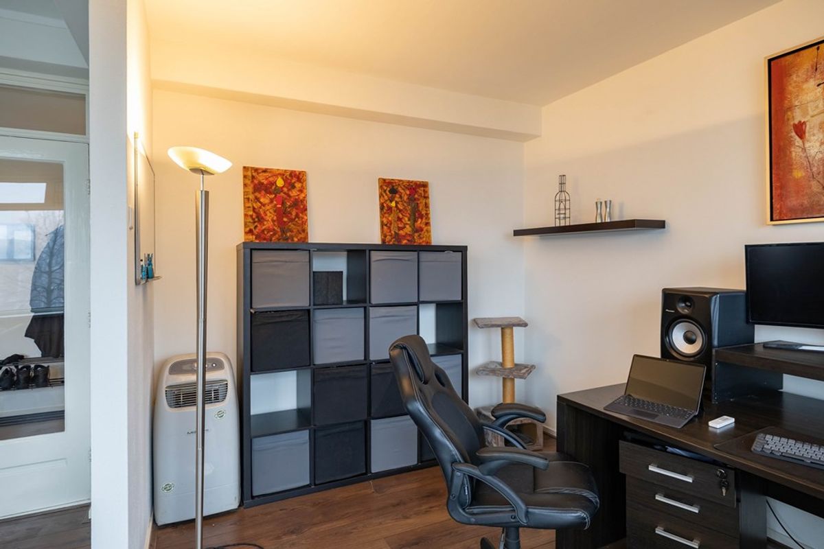 Via de gang bereikt u de moderne keuken, volledig uitgerust met inbouwapparatuur. Aangrenzend vindt u de frisse badkamer met inloopdouche. Aan de andere zijde van de gang ligt de ruime slaapkamer met dubbele wastafel. Verder treft u een separaat toilet en bereikt u de riante, lichte woonkamer. Vanuit de woonkamer stapt u zo het zonnige balkon op, waar u kunt genieten van het prachtige uitzicht over de stad met onder andere de Martinitoren. De woonkamer bestaat nu uit een zithoek en een thuiswerk gedeelte, je zou hier ook een 2e slaapkamer kunnen maken.