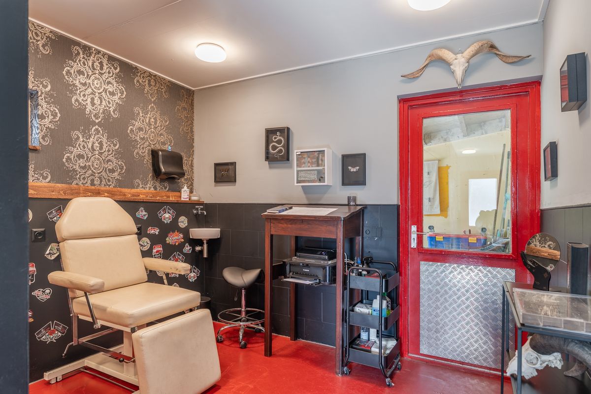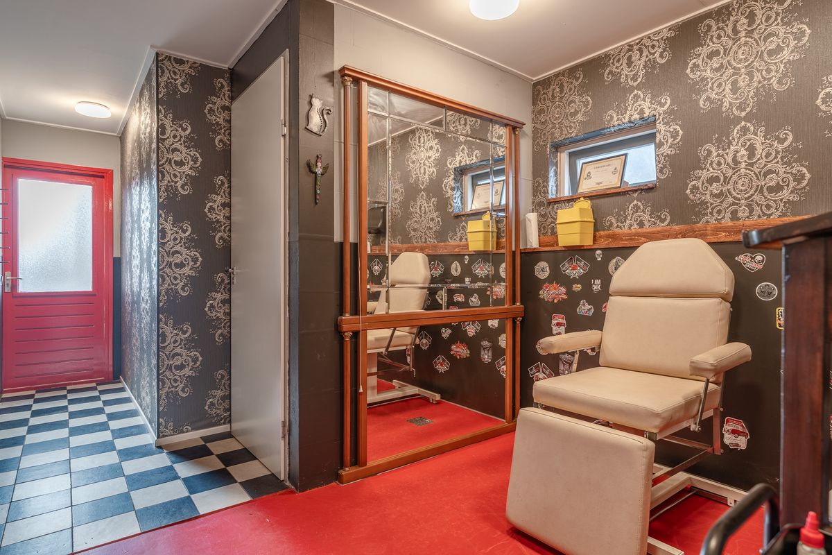Daarnaast is er een aparte ingang naar de gekeurde studio, die ideaal is als salon, praktijkruimte of extra slaapkamer met eigen toegang.