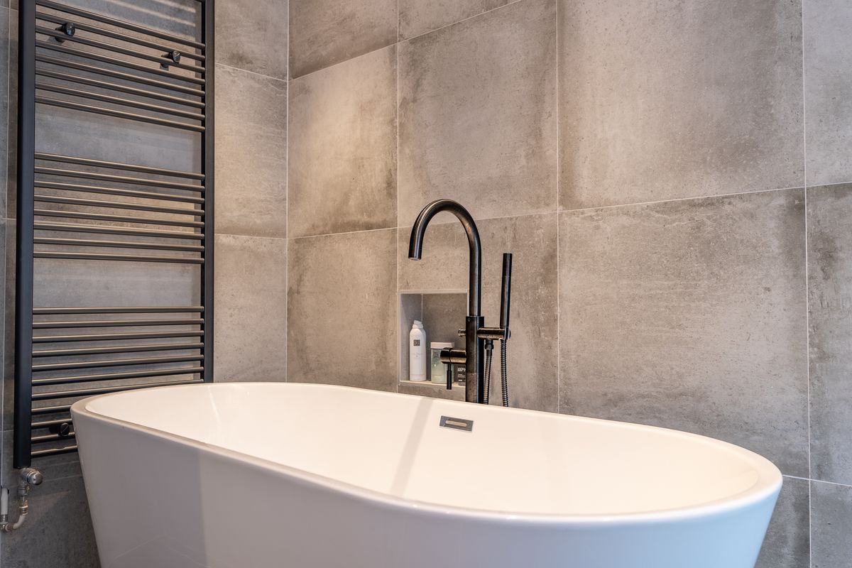 De badkamer is eveneens in 2021 vernieuwd en luxe uitgevoerd met een ligbad, inloopdouche, dubbele wastafel en designradiator.
