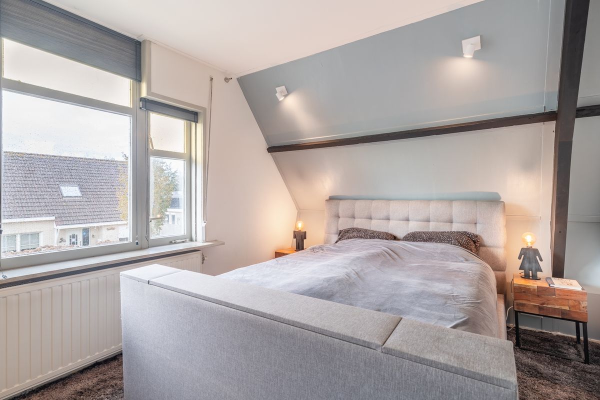 Overloop met toegang tot drie slaapkamers en een inloopkast. De inloopkast biedt extra bergruimte, maar kan desgewenst ook worden ingericht als een kleine vierde slaapkamer. De hoofdslaapkamer is voorzien van airconditioning. Alle ruimtes zijn netjes afgewerkt en beschikken over voldoende lichtinval.