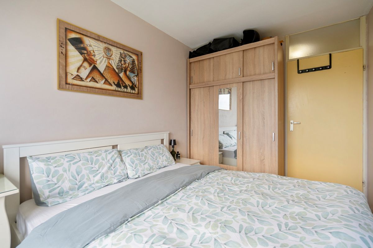 De ruime slaapkamer biedt voldoende ruimte voor ontspanning en rust.