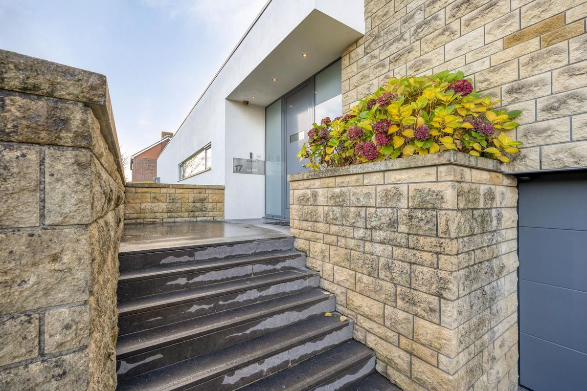 De hoofdwoning (nummer 17) biedt een woonoppervlakte van 239 m² en bevindt zich op niveau 0. Hier geeft een zeer ruime ontvangsthal toegang tot de meterkast en een toilet.