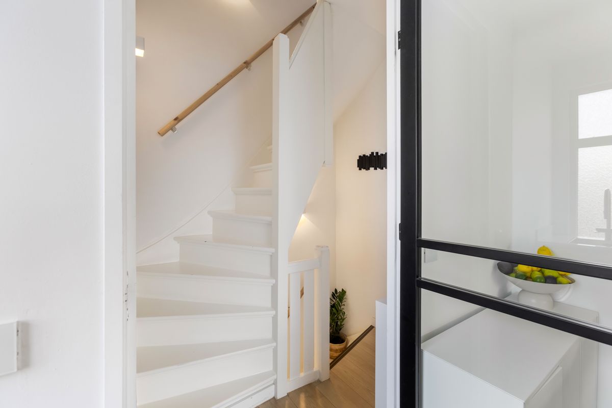 Via je eigen entree op straatniveau kom je binnen in de hal, waar de trap toegang geeft tot de bovenwoning. In de kleine hal vind je de meterkast (12 groepen en 3 aardlekschakelaars).
