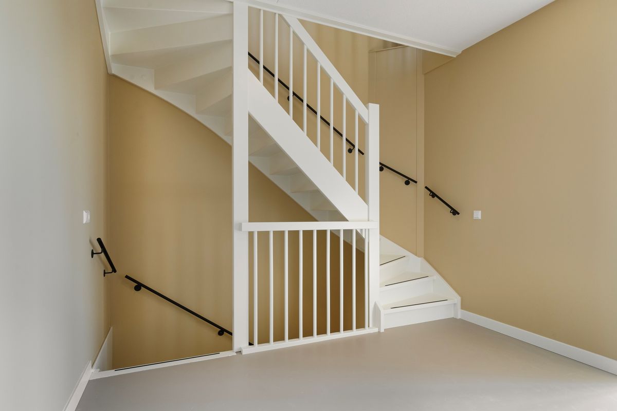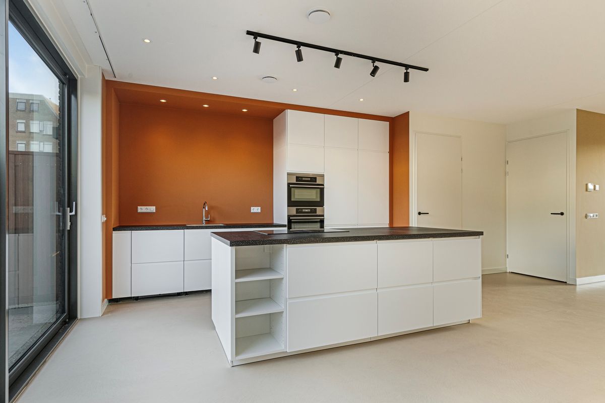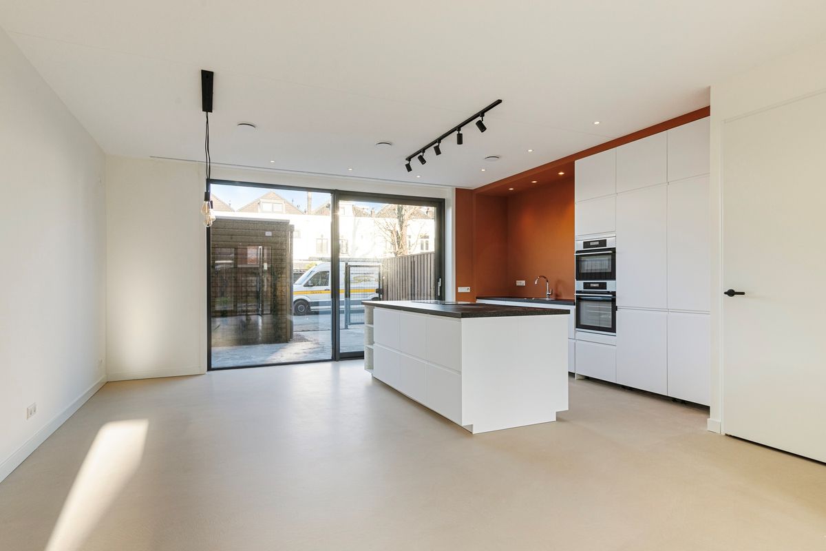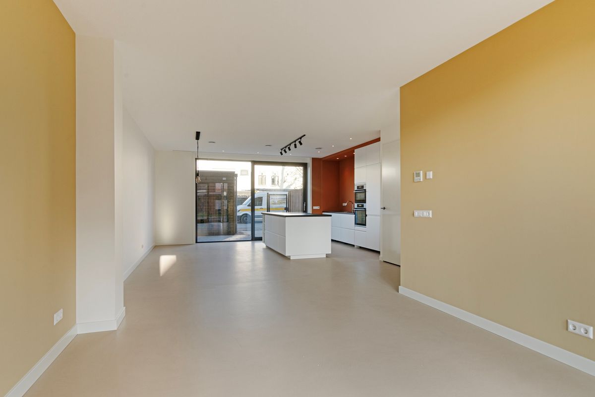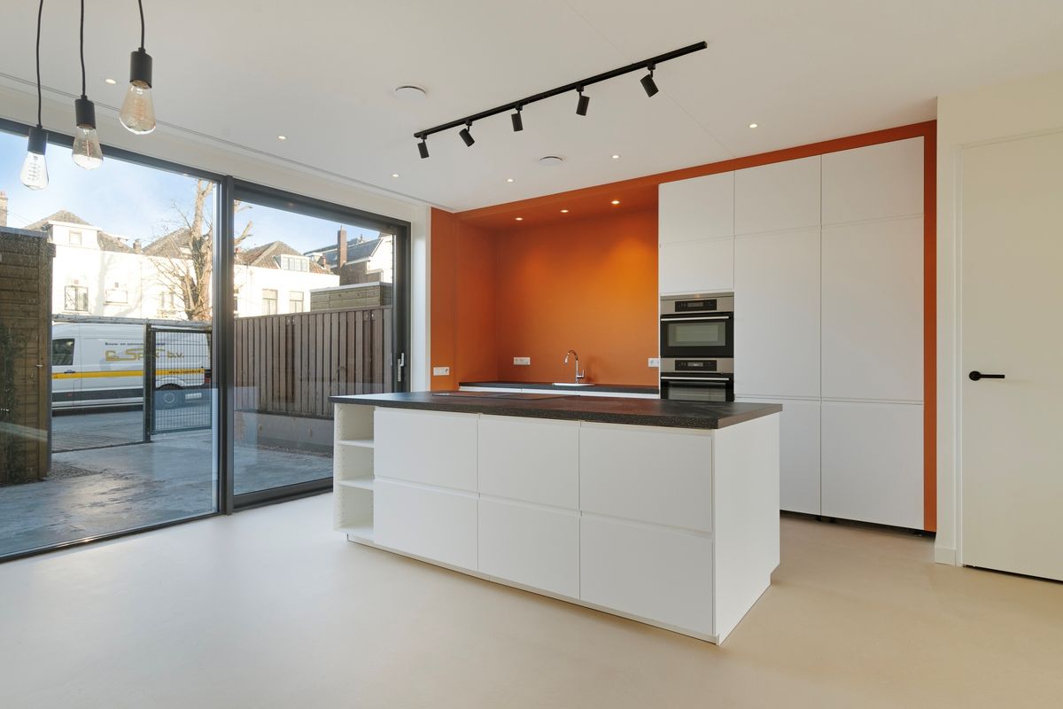 The garden is located on the North East and has a shed where you can store you bikes and garden furniture. Due to the large windows there is a lot of natural daylight on the ground floor. The brand-new open kitchen with cooking island is a real eye catcher! It is fully equipped with all appliances you need such as a fridge, freezer, induction hob, dishwasher, a sink, a double oven and a luxurious build in extractor.