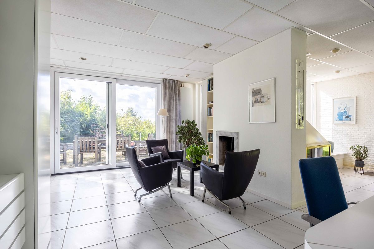 De ruime entree leidt naar een praktische hal met toilet en diverse vaste kasten. De woonkamer van ca. 97 m² is indrukwekkend groot en heeft een fijne lichtinval door de grote raampartijen. Hier is meer dan genoeg ruimte voor een mooie zithoek, een grote eettafel en bijvoorbeeld een speelhoek of werkruimte. Vanuit de woonkamer geven schuifdeuren direct toegang tot de tuin – ideaal om in elk seizoen van het buitenleven te genieten.