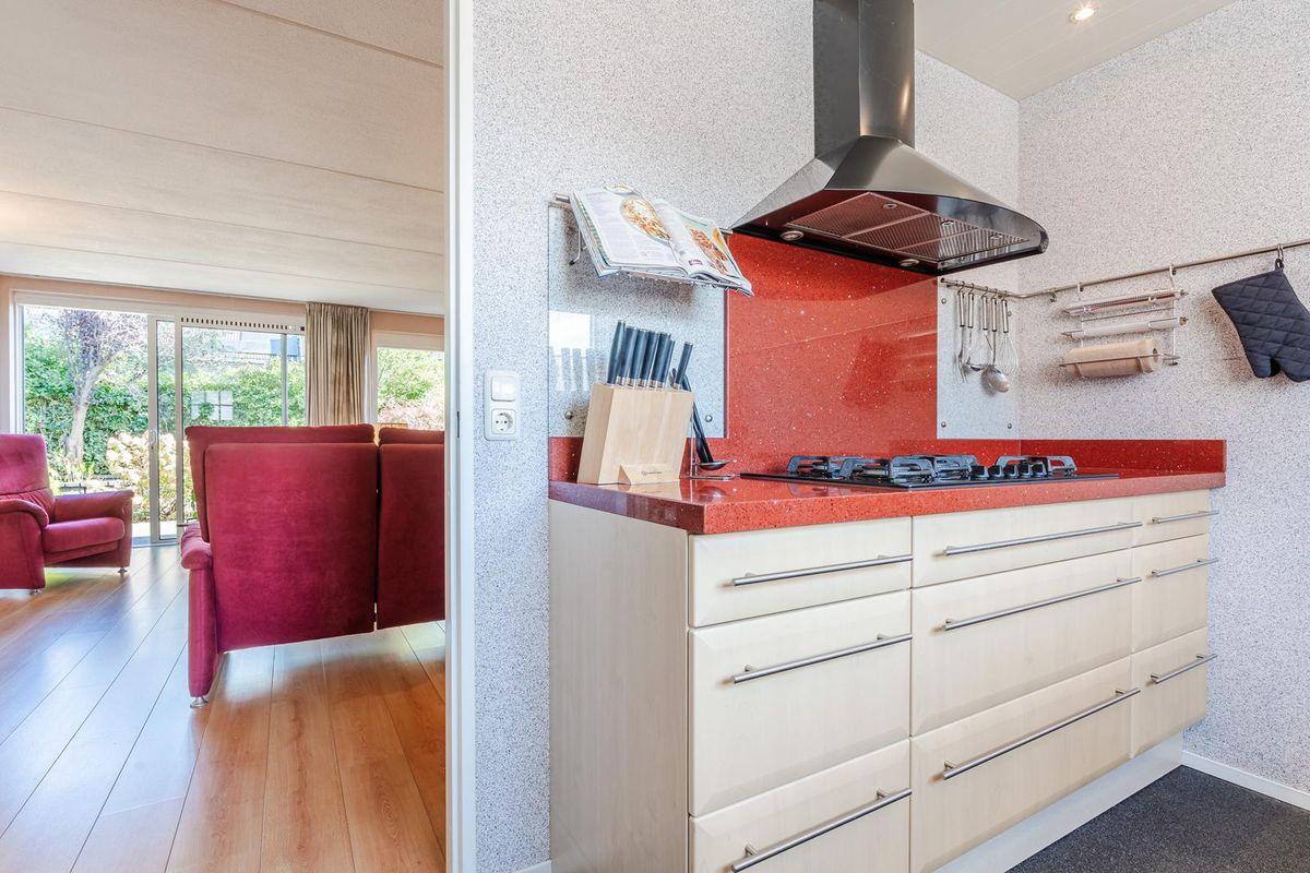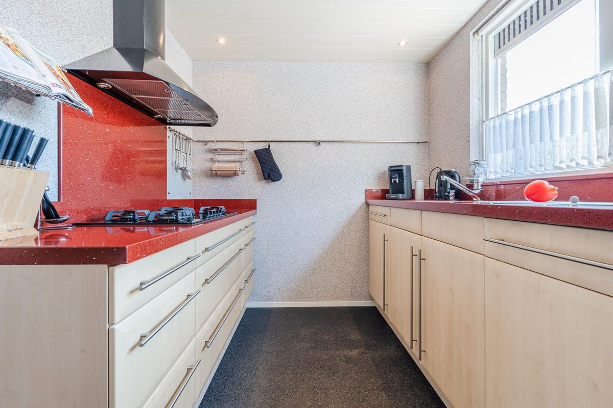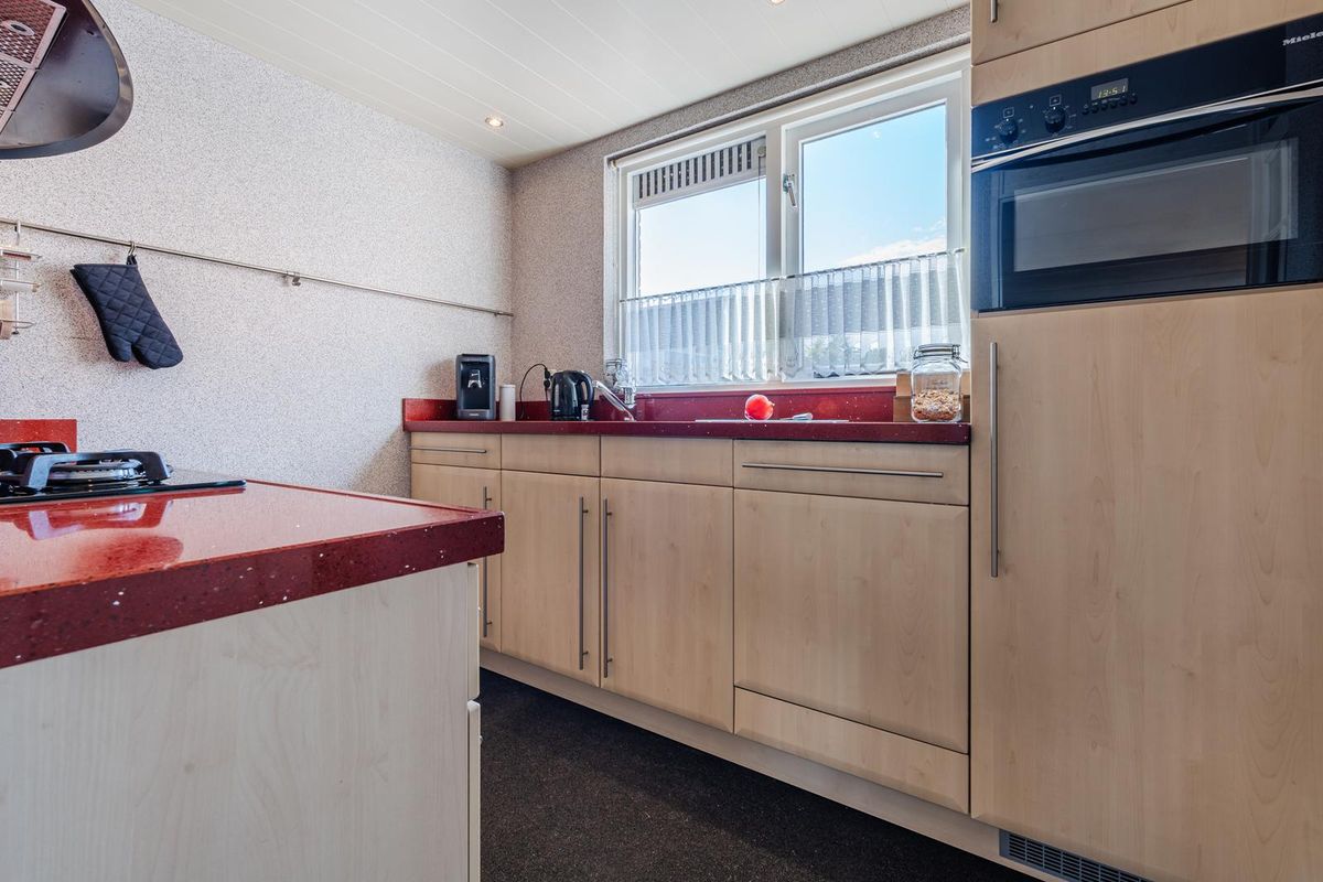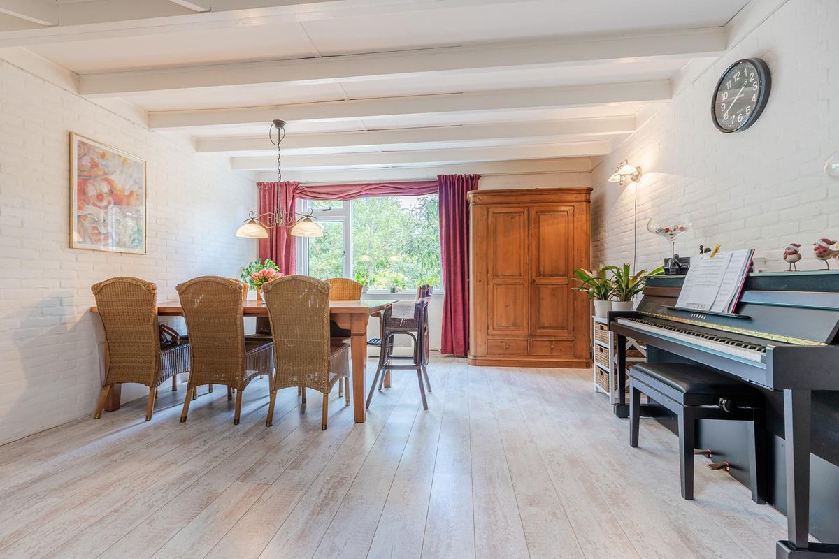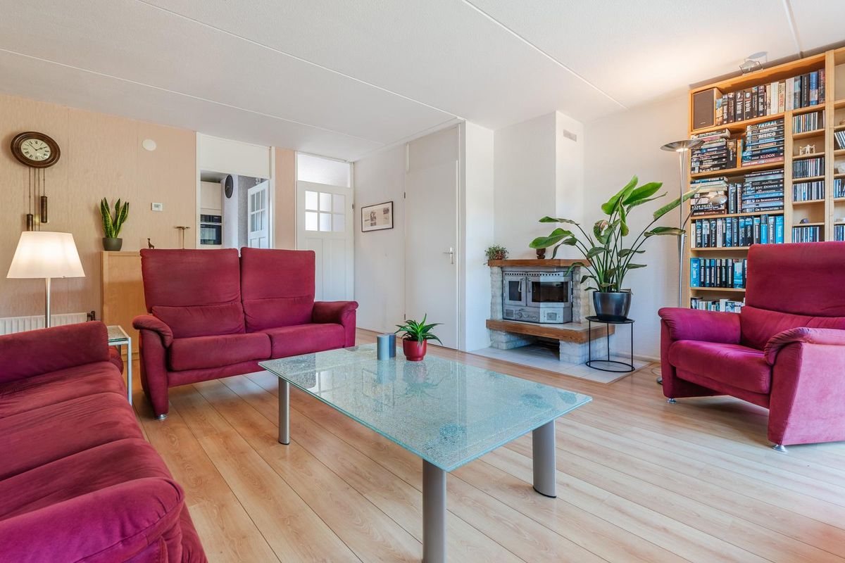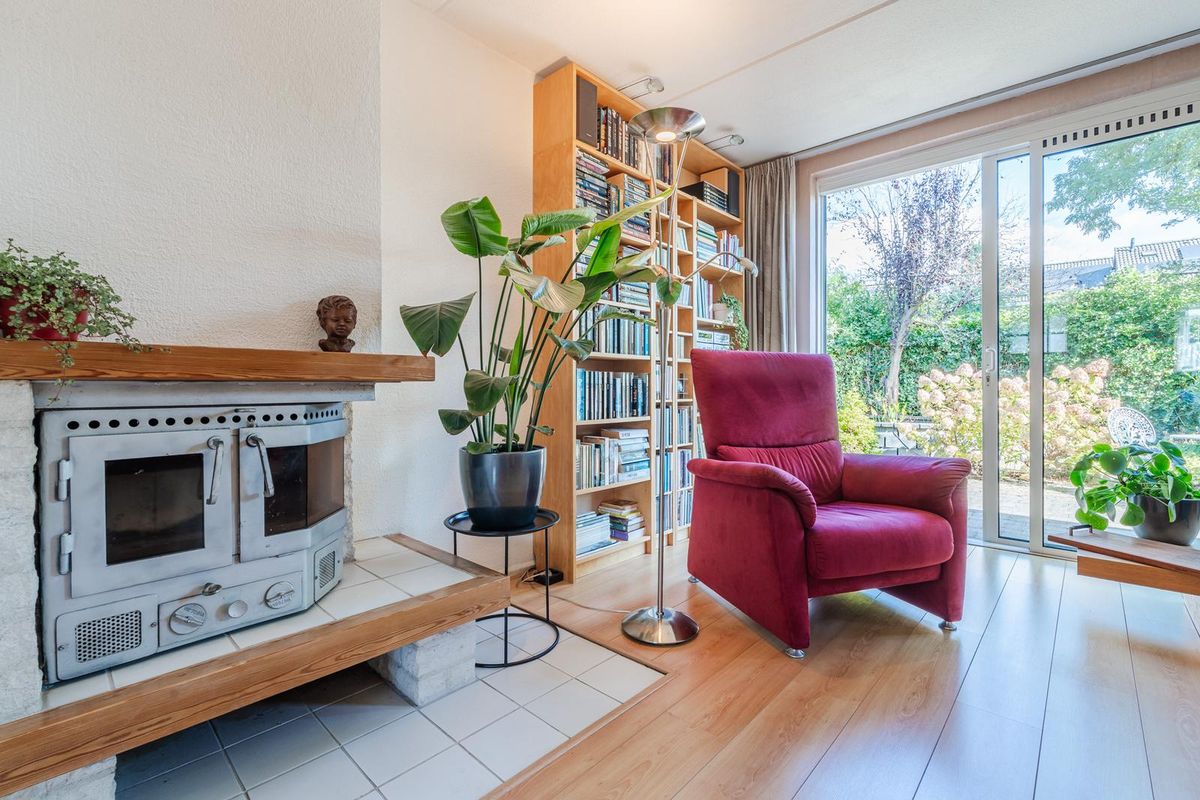 Indeling: Entree met de meterkast, toilet, trapopgang en toegang tot de ruime aangebouwde multifunctionele ruimte. De functie van deze ruimte kan naar eigen inzicht ingevuld worden. Wat dacht u van een eetkamer, een speelkamer, kantoor, praktijk of eventueel een verbouwing tot een slaapkamer met badkamer op de begane grond. Deze ruimte geeft toegang tot de garage met openslaande kunststofgaragedeuren naar de oprit toe. De lichte woonkamer is voorzien van een trapkast, gesloten inzethaard en middels de aluminium schuifpui kan de tuin bereikt worden. Het is een onder architectuur aangelegde tuin met vijver diverse royale terrassen en wisselend bloeiende vaste planten, met aan de achterzijde volop gemeente-groen. Dat geeft een heerlijk vrij gevoel dat door zijn ideale ligging Zuidoost altijd de mogelijkheid heeft om of in de zon, of in de schaduw te vertoeven. De keuken heeft een stenen werkblad en diverse inbouwapparatuur.