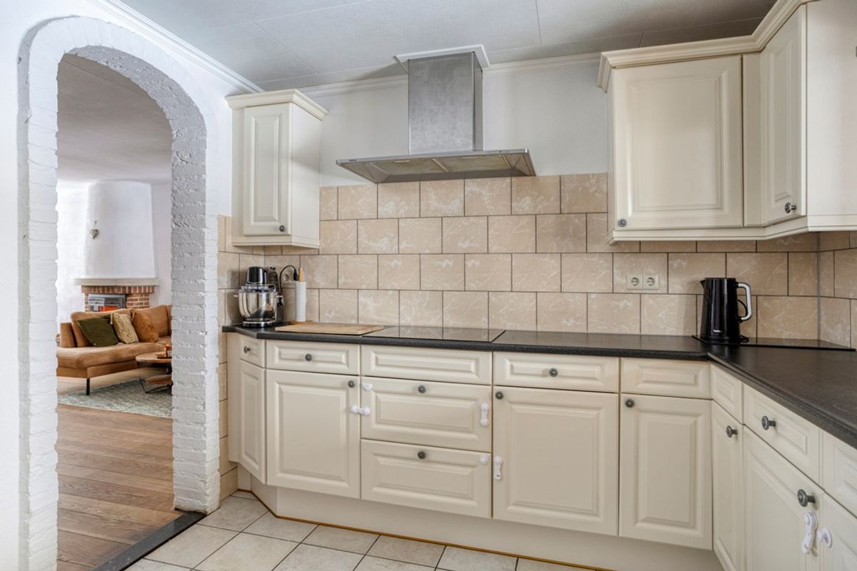 De uitgebouwde keuken is licht en functioneel ingericht met een hoekopstelling en voorzien van diverse inbouwapparatuur, waaronder een elektrische kookplaat, afzuigkap, koelkast, vaatwasser en een combi-magnetron. Inbouwspots zorgen voor prettige verlichting en maken het geheel compleet.