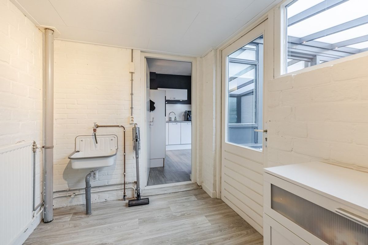 - Bijkeuken met wasmachine-/drogeraansluitingen, laminaat vloer en deur naar de tuinkamer