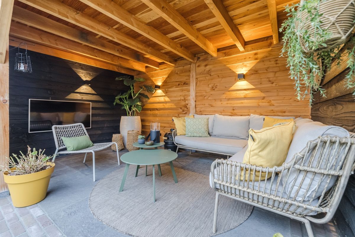 - Achtertuin gelegen op het zuiden met beregeningssyteem, fraai terras en sfeervolle terrasoverkapping;